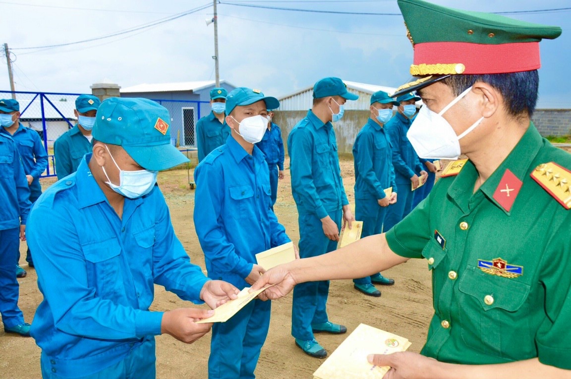 (QK7 Online) - Ngày 7-10, Đại tá Bùi Văn Sỹ, Phó Chính ủy Bộ CHQS tỉnh Đồng Nai đến thăm, động viên và tặng quà cán bộ, chiến sĩ, lực lượng tuyến đầu đang phục vụ tại Bệnh viện dã chiến (BVDC) số 11, đóng tại xã Xuân Hòa, huyện Xuân Lộc.