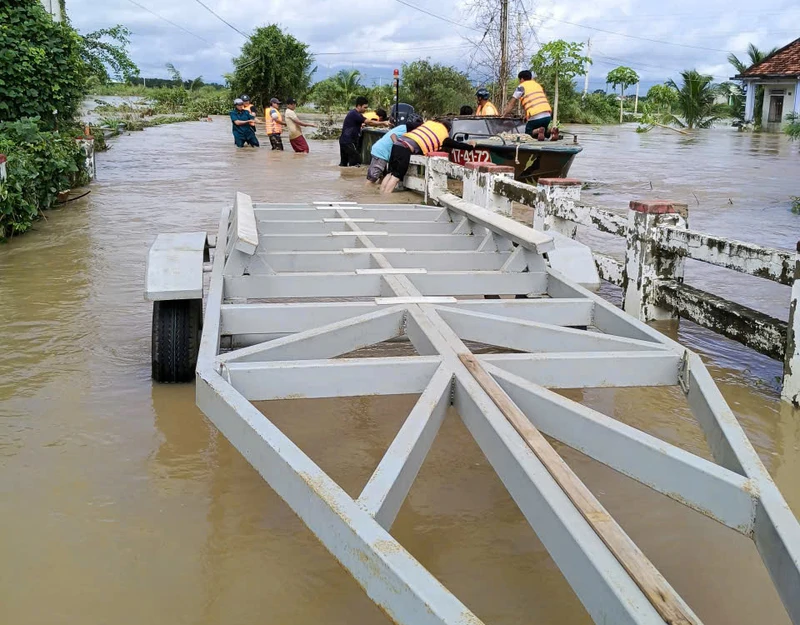 Ngoài điều động kịp thời lực lượng ứng phó, Bộ CHQS tỉnh còn điều động các phương tiện hỗ trợ kịp thời như: xe tải quân dụng, xuồng, ca nô…nhất là tại các điểm xung yếu, nguy cơ cao, ngập lụt nặng.