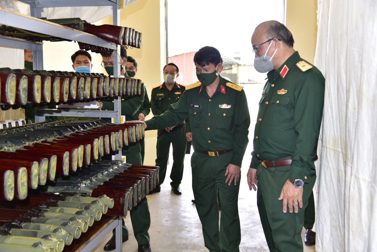 Thiếu tướng Du Trường Giang, Phó Tư lệnh Quân khu kiểm tra việc bảo quản vũ khí của LLVT tỉnh Lâm Đồng.