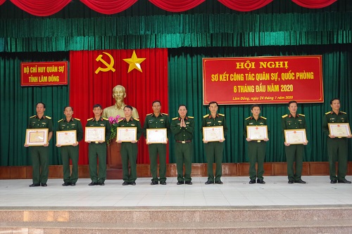 Hội nghị tặng bằng khen của Bộ Quốc phòng cho 2 tập thể và 2 cá nhân; 1 tập thể và 1 cá nhân được Quân Khu tặng bằng khen; 7 tập thể và 3 cá nhân được UBND tỉnh Lâm Đồng tặng bằng khen có thành tích xuất sắc trong công tác tuyển chọn, gọi công dân nhập ngũ năm 2020.
