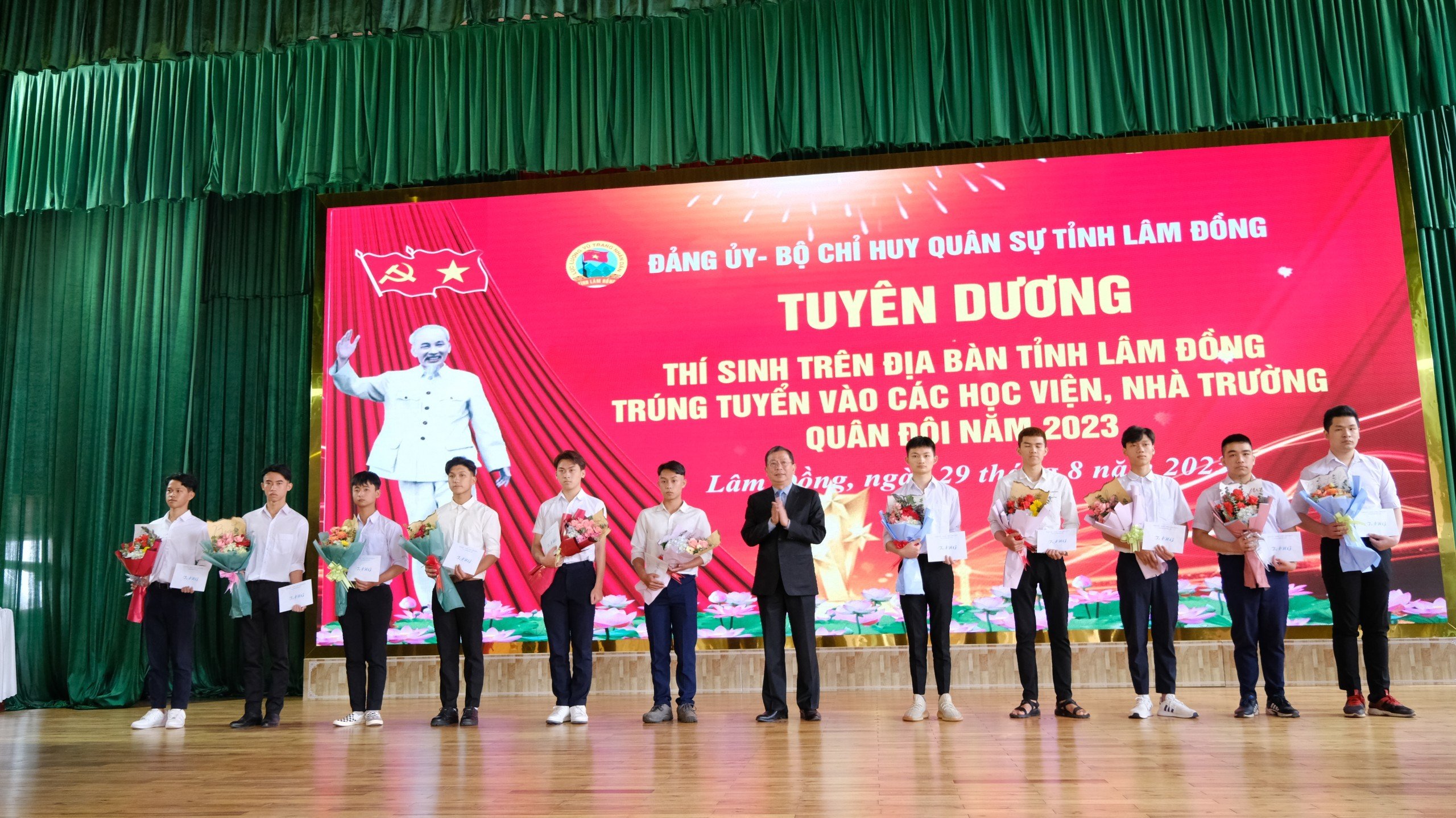 Bộ CHQS tỉnh Lâm Đồng tuyên dương các thí sinh trúng tuyển vào các học viện, nhà trường Quân đội năm 2023.