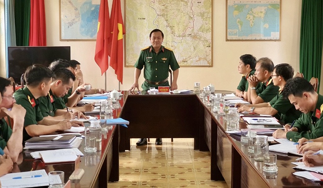 Thượng tá Nguyễn Thành Trung, Chính ủy Bộ CHQS tỉnh chủ trì buổi làm việc.