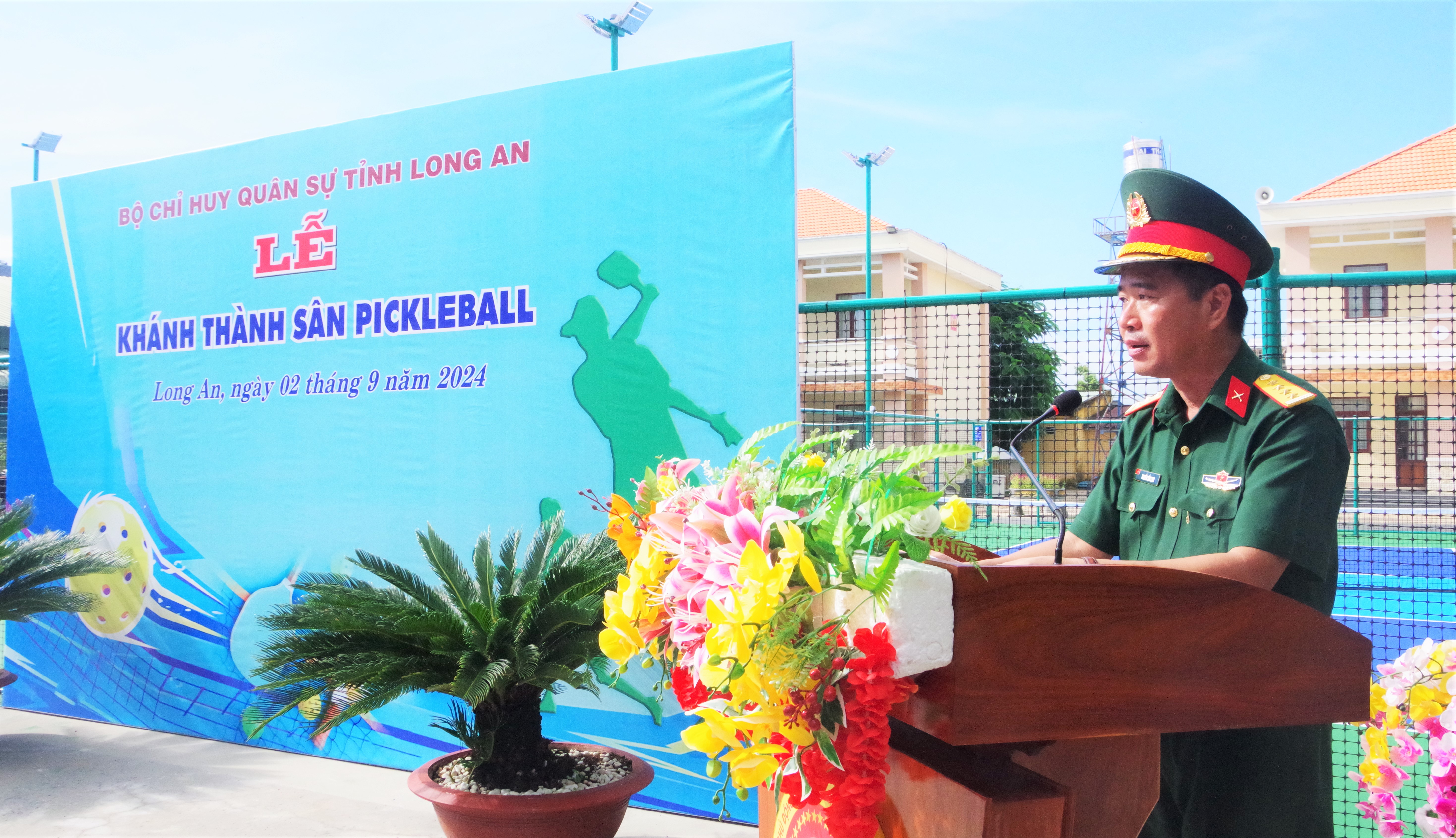 Phát biểu khánh thành, Đại tá Nguyễn Tấn Linh, Chỉ huy trưởng Bộ CHQS tỉnh nhấn mạnh: Pickleball là môn thể thao lành mạnh, xây dựng lối sống năng động, mang nhiều lợi ích cho sức khỏe và nâng cao tinh thần đoàn kết gắn bó trong cán bộ, chiến sĩ góp phần hoàn thành tốt mọi nhiệm vụ được giao. Đây là điểm khởi đầu, đầu mốc quan trọng cho làn gió mới trong hoạt động phong trào thể dục thể thao.  Đồng chí Chỉ huy trưởng Bộ CHQS tỉnh yêu cầu thời gian tới các cơ quan, địa phương, đơn vị trong LLVT tỉnh đưa môn Pickleball vào luyện tập và thi đấu các nội dung trong hội thao.