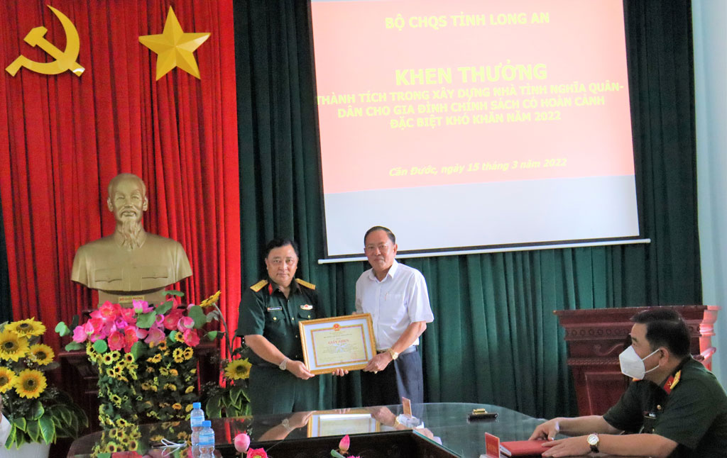 Thay mặt Đảng ủy, Bộ Chỉ huy Quân sự tỉnh, Đại tá Trần Văn Trai gửi lời cảm ơn sâu sắc đối với ông Võ Thành Trung, Giám đốc Công ty Trung Thành đã dành những tình cảm đặc biệt, quan tâm, giúp đỡ, chung sức cùng LLVT tỉnh xây dựng mái ấm nghĩa tình quân - dân và giúp đỡ LLVT tỉnh hoàn thành tốt nhiệm vụ thời gian qua.