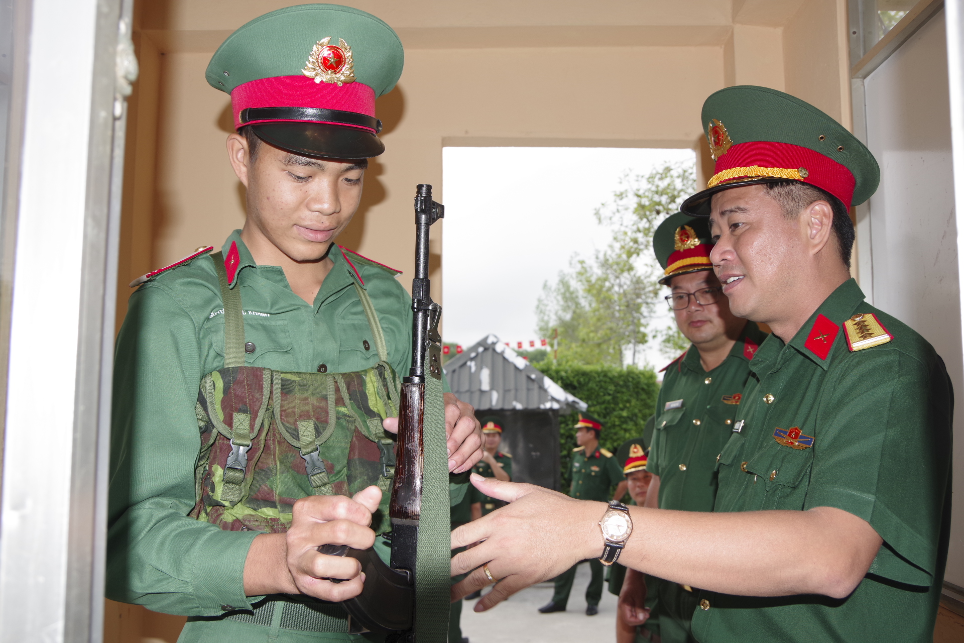 Đại tá Nguyễn Tấn Linh, Chỉ huy trưởng Bộ CHQS tỉnh kiểm tra công tác sẵn sàng chiến đấu tại Tiểu đoàn bộ binh 1.