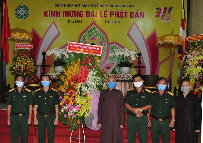 Bộ CHQS tỉnh Long An thăm, chúc mừng lễ Phật đản chùa Thiên Châu
