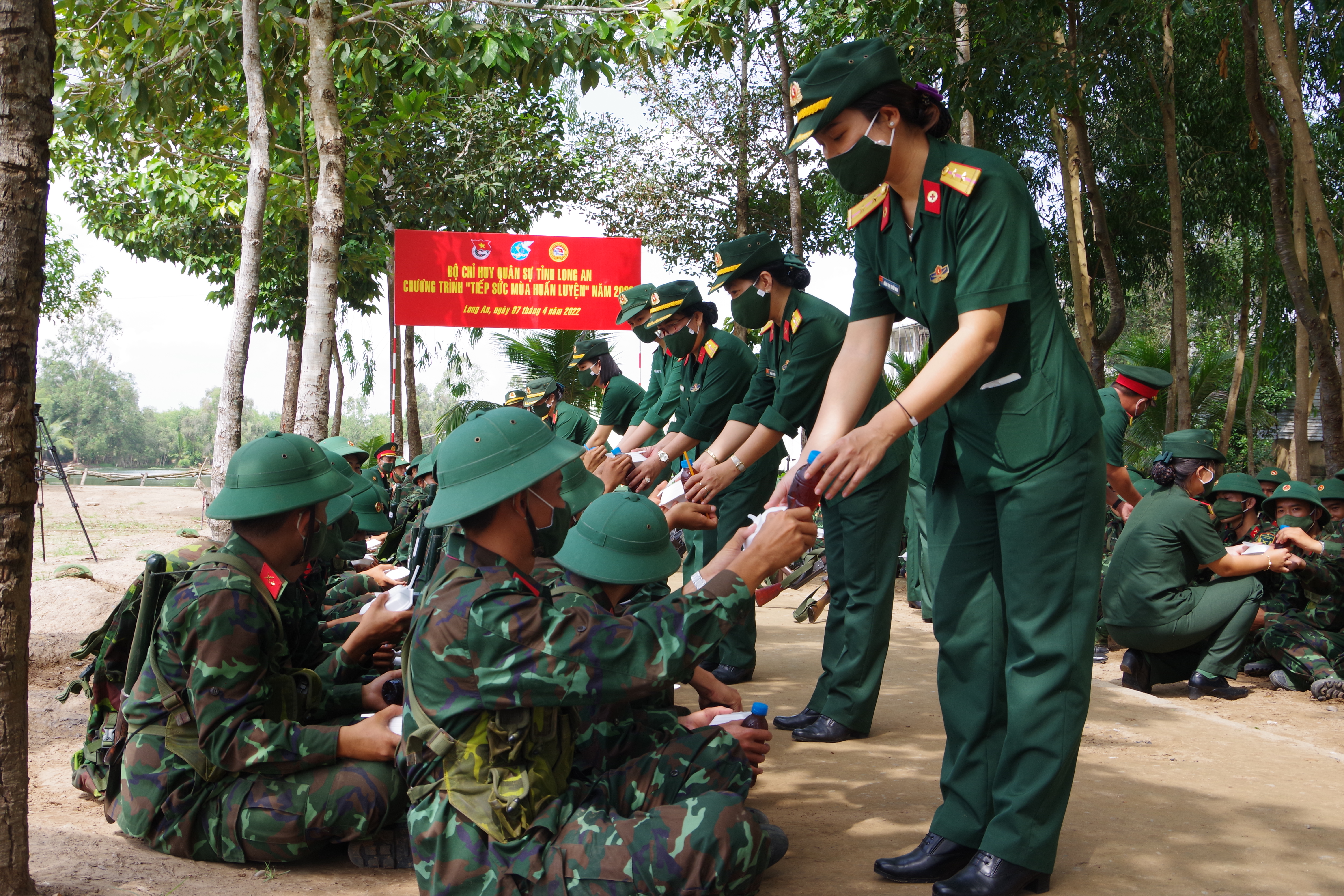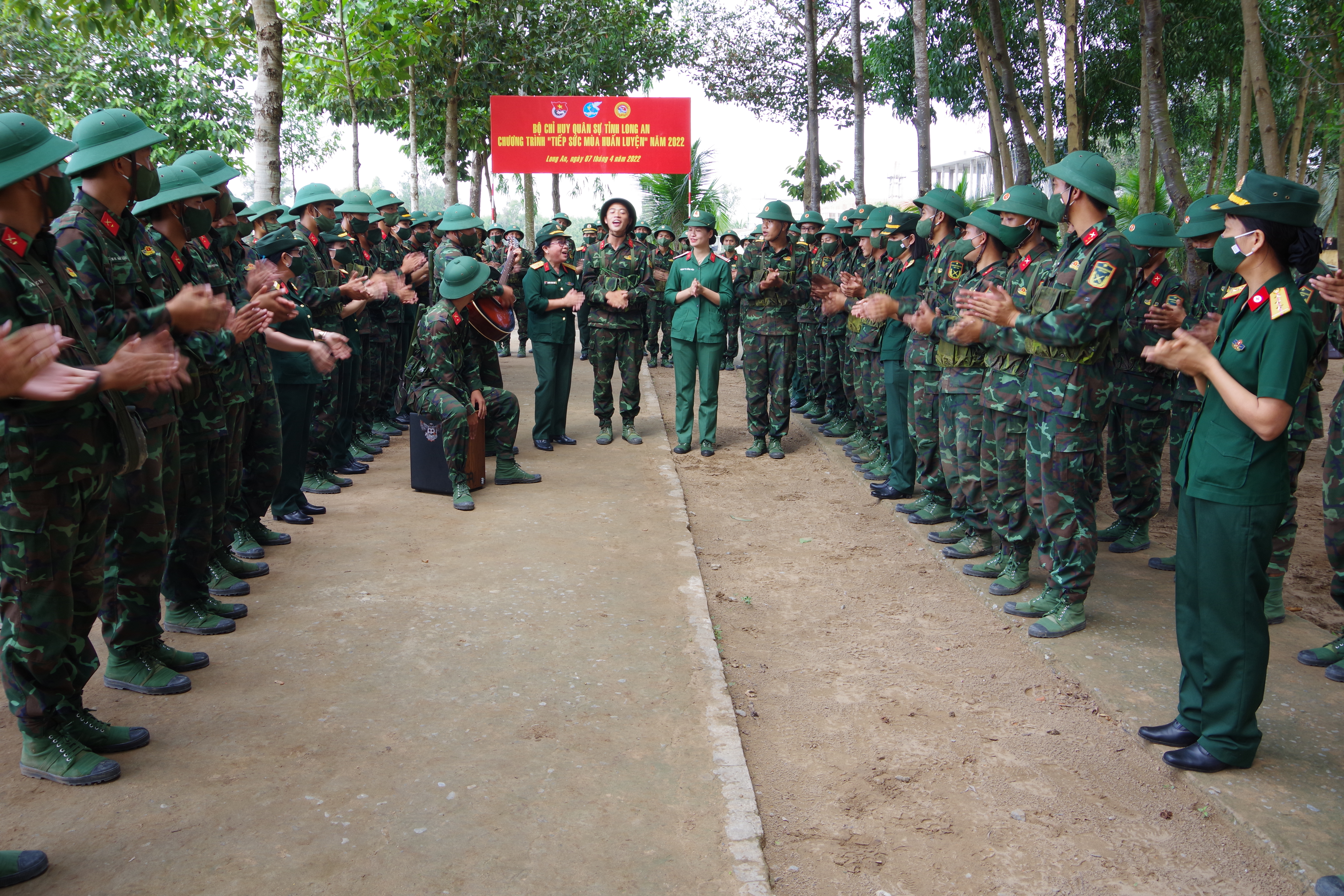 Tại chương trình “Tiếp sức mùa huấn luyện”, Thượng tá Phạm Văn Hào, Phó Chủ nhiệm Chính trị Bộ CHQS tỉnh biểu dương tinh thần khắc phục khó khăn, hòa nhập vào môi trường mới và quyết tâm học tập, rèn luyện của chiến sĩ mới và ân cần thăm hỏi, động viên, chia sẻ sự vất vả, bỡ ngỡ của chiến sĩ mới trong công tác huấn luyện, với điều kiện thời tiết nắng nóng, cường độ luyện tập cao.