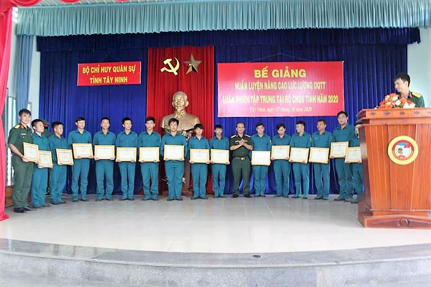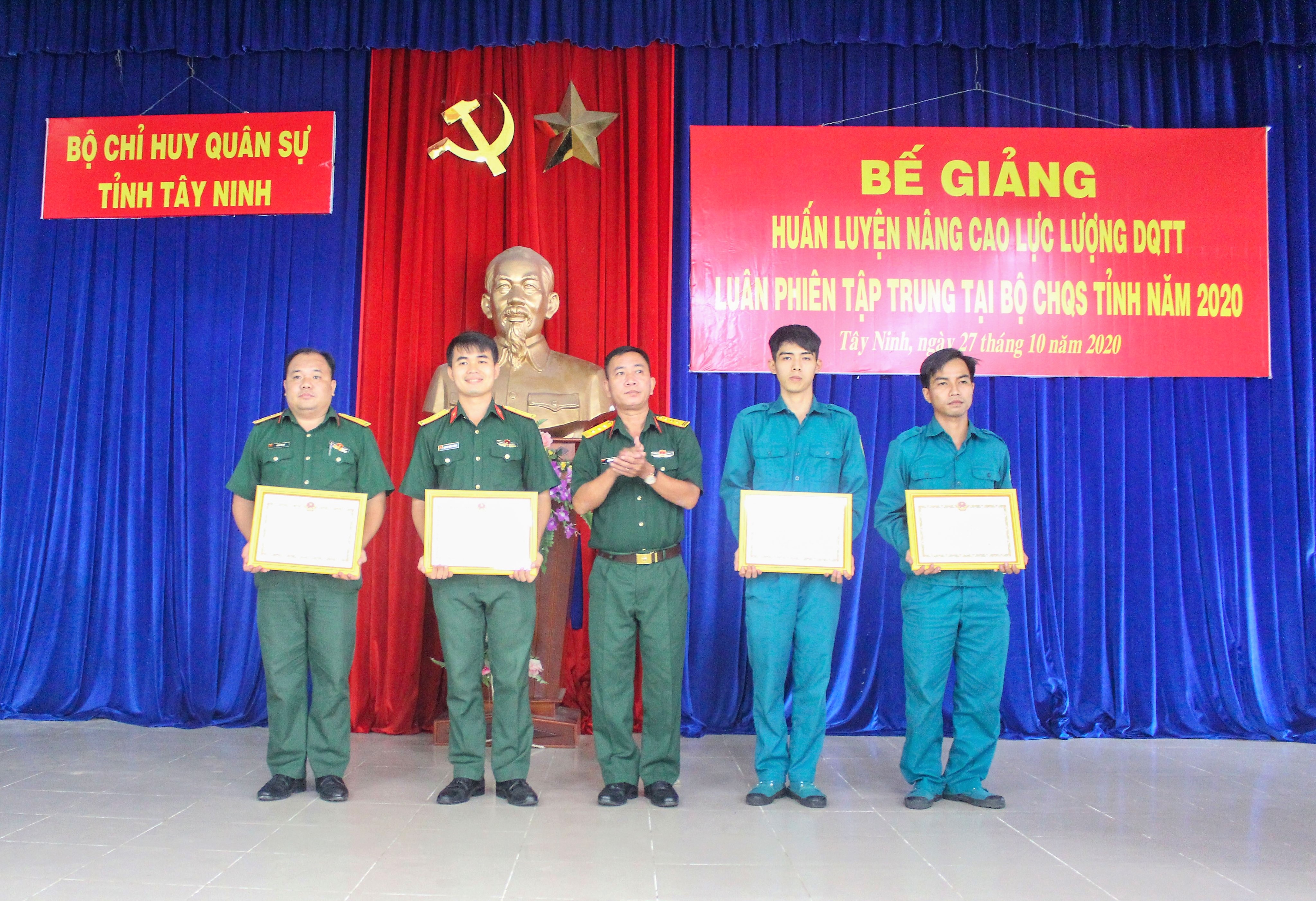 Tại buổi bế giảng, Bộ CHQS tỉnh biểu dương khen thưởng 4 tập thể và 18 cá nhân có thành tích tiêu biểu xuất sắc trong tham gia huấn luyện.