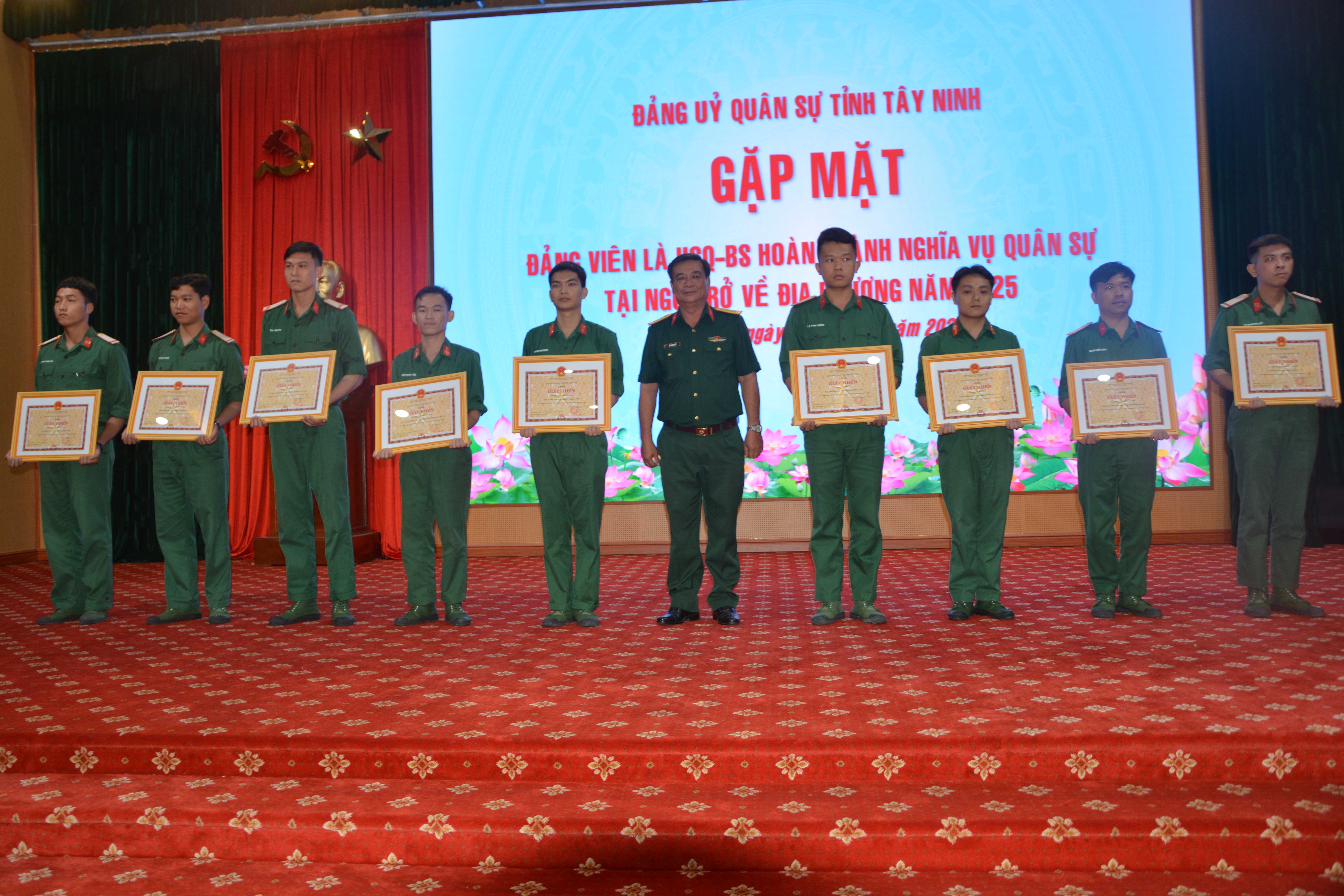 Đại tá Đỗ Thành Việt tặng giấy khen cho các đồng chí đảng viên có thành tích xuất sắc.