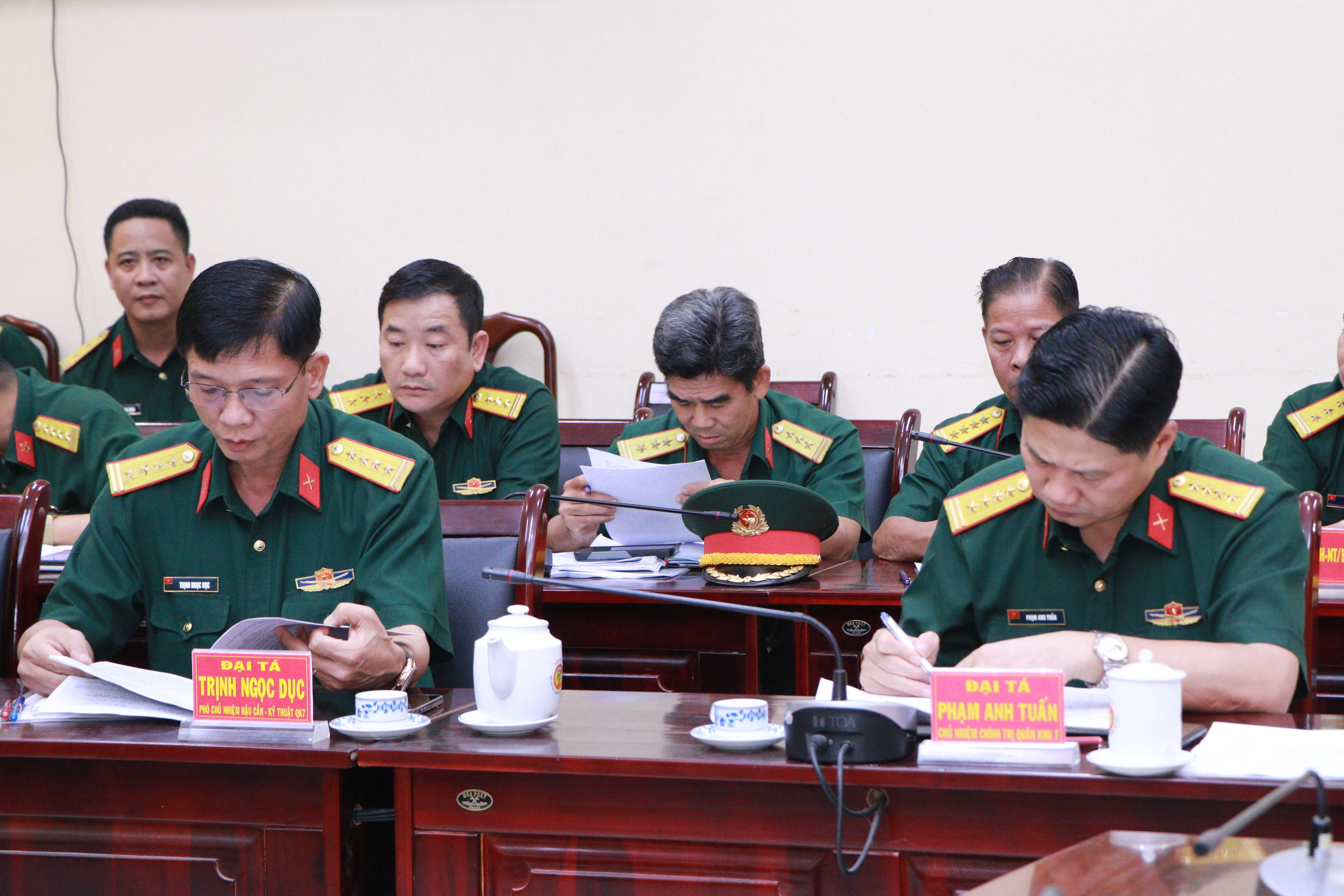 Tham gia đoàn công tác có Đại tá Phạm Anh Tuấn, Chủ nhiệm Chính trị Quân khu; Đại tá Trịnh Ngọc Dục, Phó Chủ nhiệm Hậu cần - Kỹ thuật Quân khu; thủ trưởng các cơ quan chức năng của Bộ Tham mưu, Cục Chính trị, Cục Hậu cần - Kỹ thuật Quân khu.