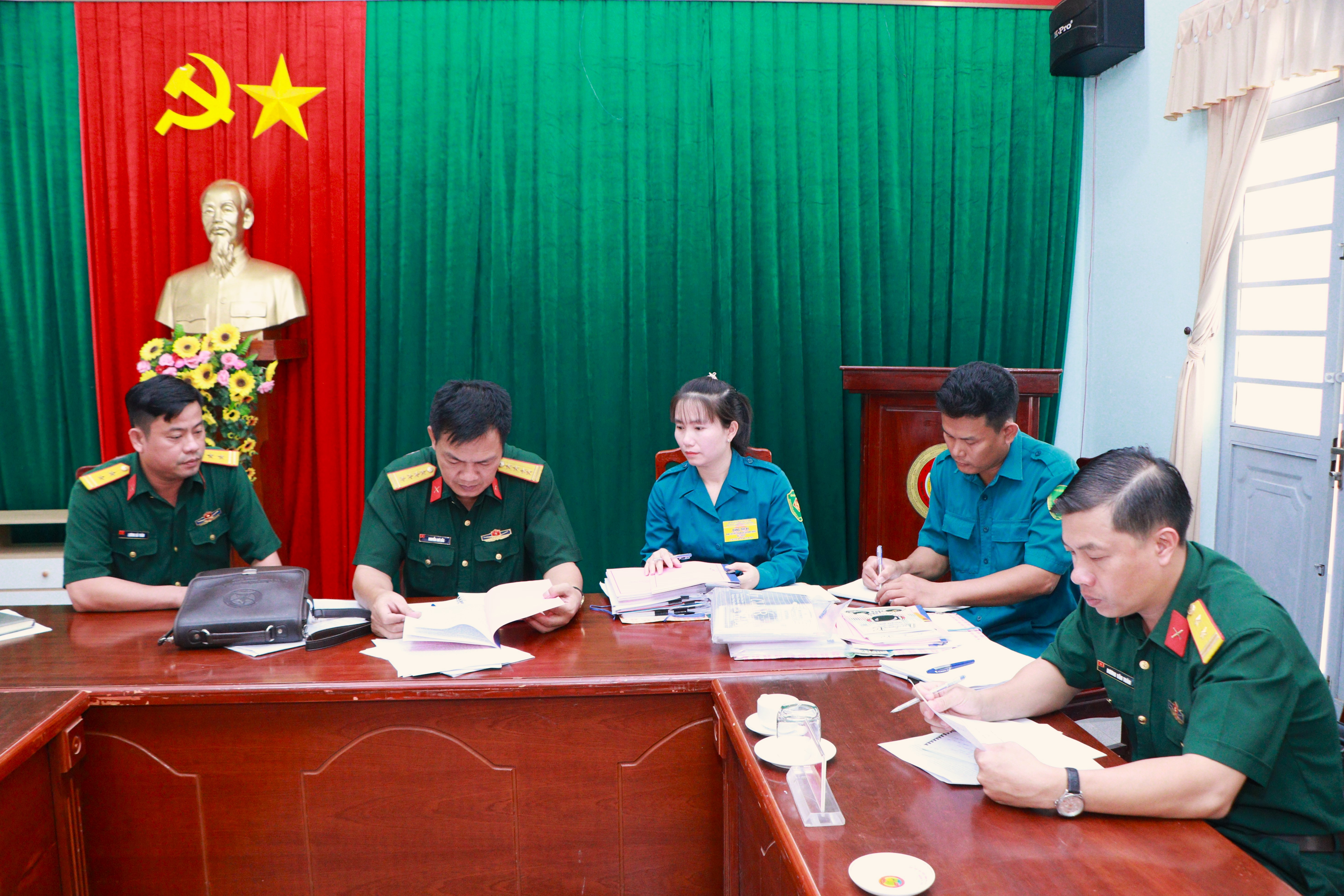 Kiểm tra hệ thống văn bản của Ban CHQS xã Ninh Điền, huyện Châu Thành.