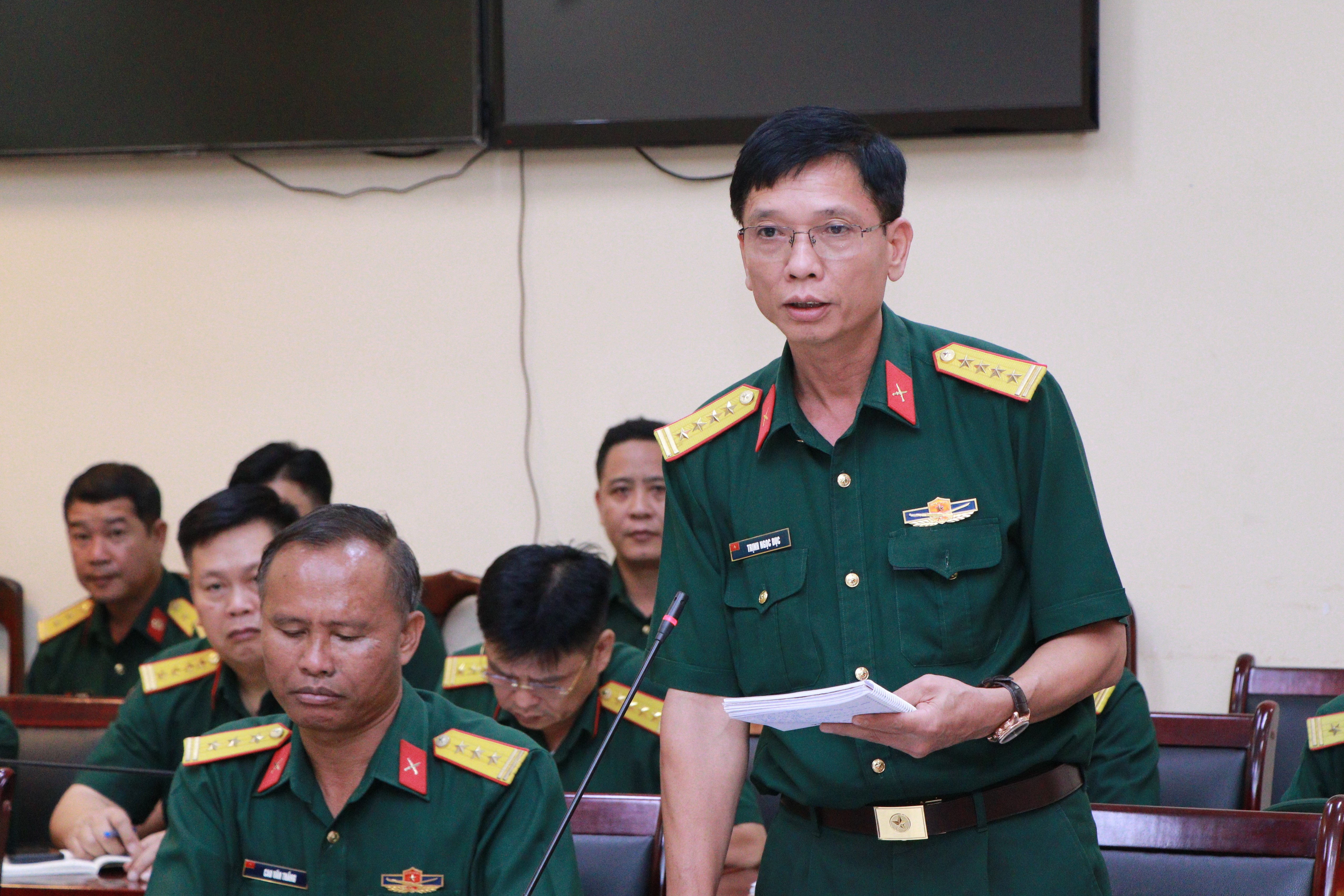 Đại tá Trịnh Ngọc Dục, Phó Chủ nhiệm Hậu cần - Kỹ thuật Quân khu nhận xét kết quả kiểm tra công tác hậu cần, kỹ thuật.