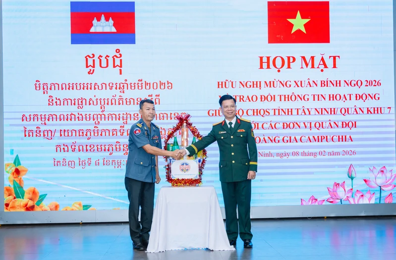(QK7 Online) - Ngày 8/2, Bộ Chỉ huy Quân sự (CHQS) tỉnh Tây Ninh tổ chức họp mặt hữu nghị mừng Xuân Bính Ngọ 2026 và trao đổi thông tin về tình hình hoạt động giữa Bộ CHQS tỉnh với các đơn vị Quân đội Hoàng gia Campuchia.