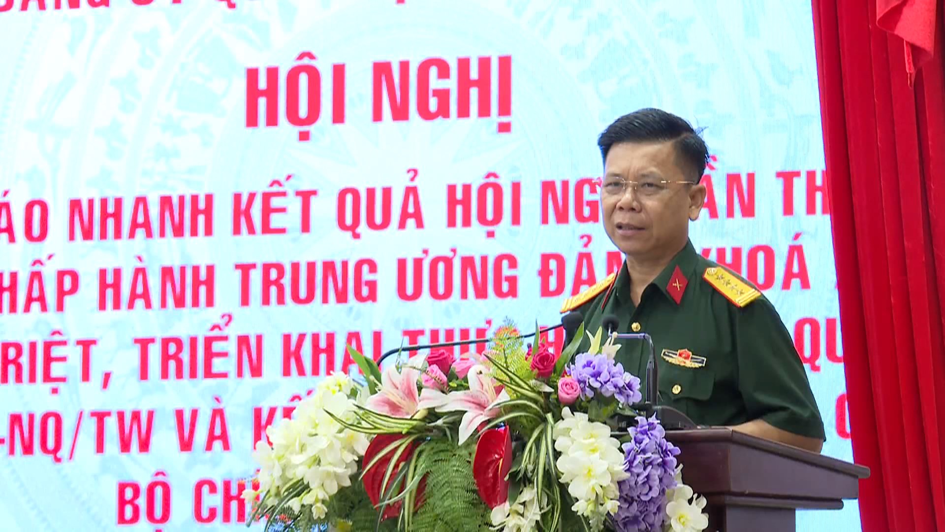 Thượng tá Trần Văn Toàn, Phó Chủ nhiệm Chính trị Bộ CHQS tỉnh quán triệt, triển khai thực hiện Nghị quyết số 34; Kết luận số 57 của Bộ Chính trị khóa XIII về tiếp tục nâng cao chất lượng, hiệu quả công tác thông tin đối ngoại trong tình hình mới.