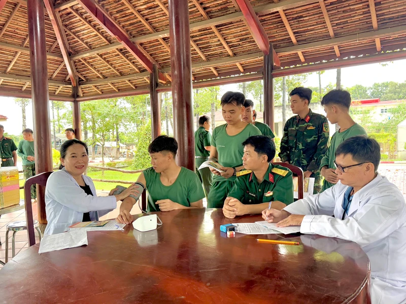 (QK7 Online) - Trong hai ngày 3 và 4/11, Bộ CHQS tỉnh Tây Ninh phối hợp với Trung tâm kiểm soát bệnh tật, Sở Y tế tỉnh Tây Ninh tổ chức tiêm vắc xin phòng bệnh cho cán bộ, chiến sĩ Đội K71, K73 trước khi lên đường làm nhiệm vụ tìm kiếm, quy tập hài cốt liệt sĩ quân tình nguyện và chuyên gia Việt Nam hy sinh tại Campuchia, giai đoạn XXV (mùa khô 2025-2026).