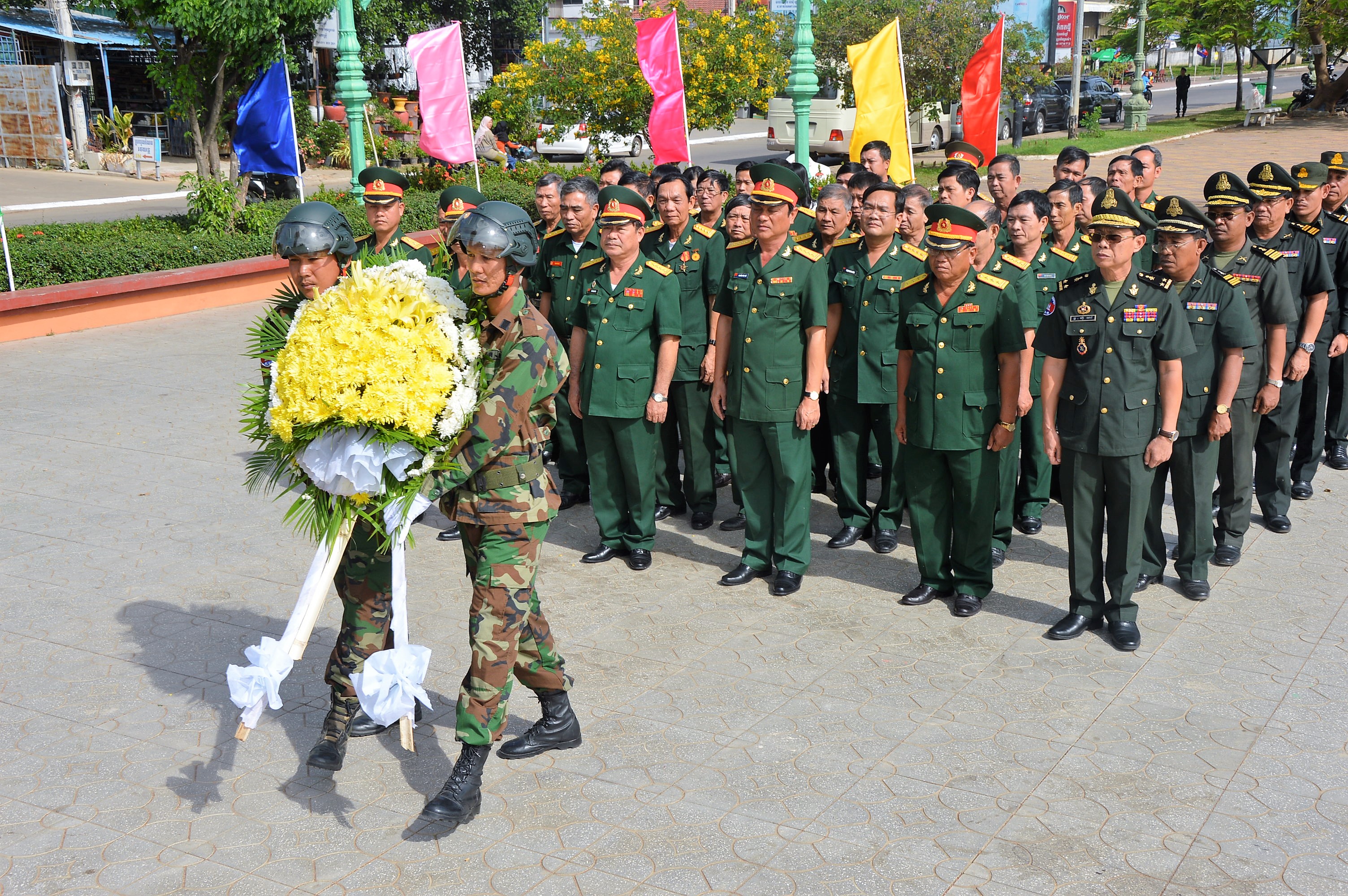 Đoàn công tác Tây Ninh do Đại tá Nguyễn Văn Trứ, Chỉ huy trưởng Bộ CHQS tỉnh làm trưởng đoàn, cùng cán bộ chiến sĩ Tiểu khu quân sự tỉnh KamPongCham viếng Tượng đài hữu nghị Việt Nam Campuchia ở tỉnh KamPongCham.