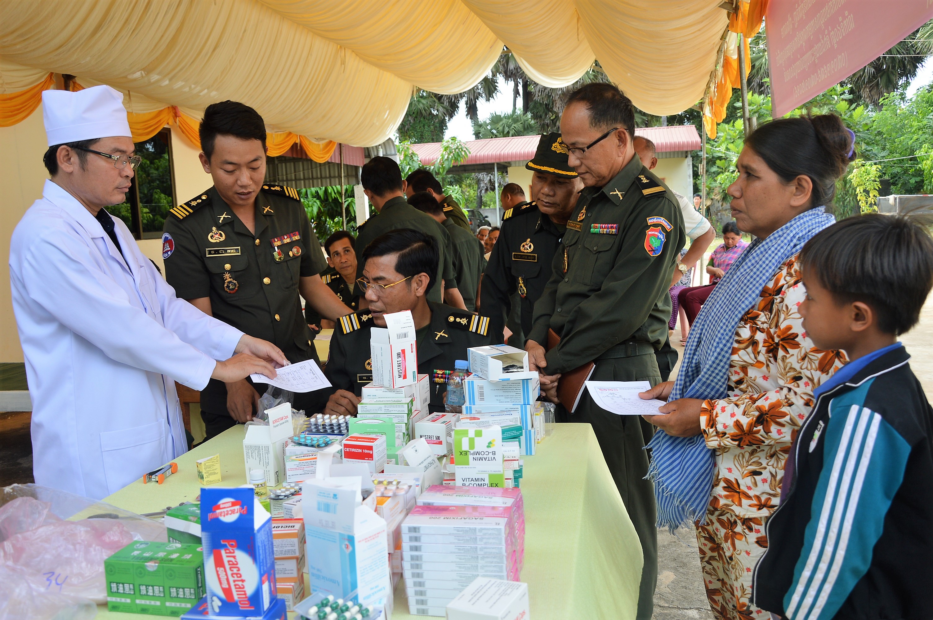 Quân y Bộ CHQS Tây Ninh khám bệnh, điều trị và cấp thuốc cho cán bộ, chiến sĩ Tiểu khu quân sự tỉnhTboung Khmum, Campuchia.