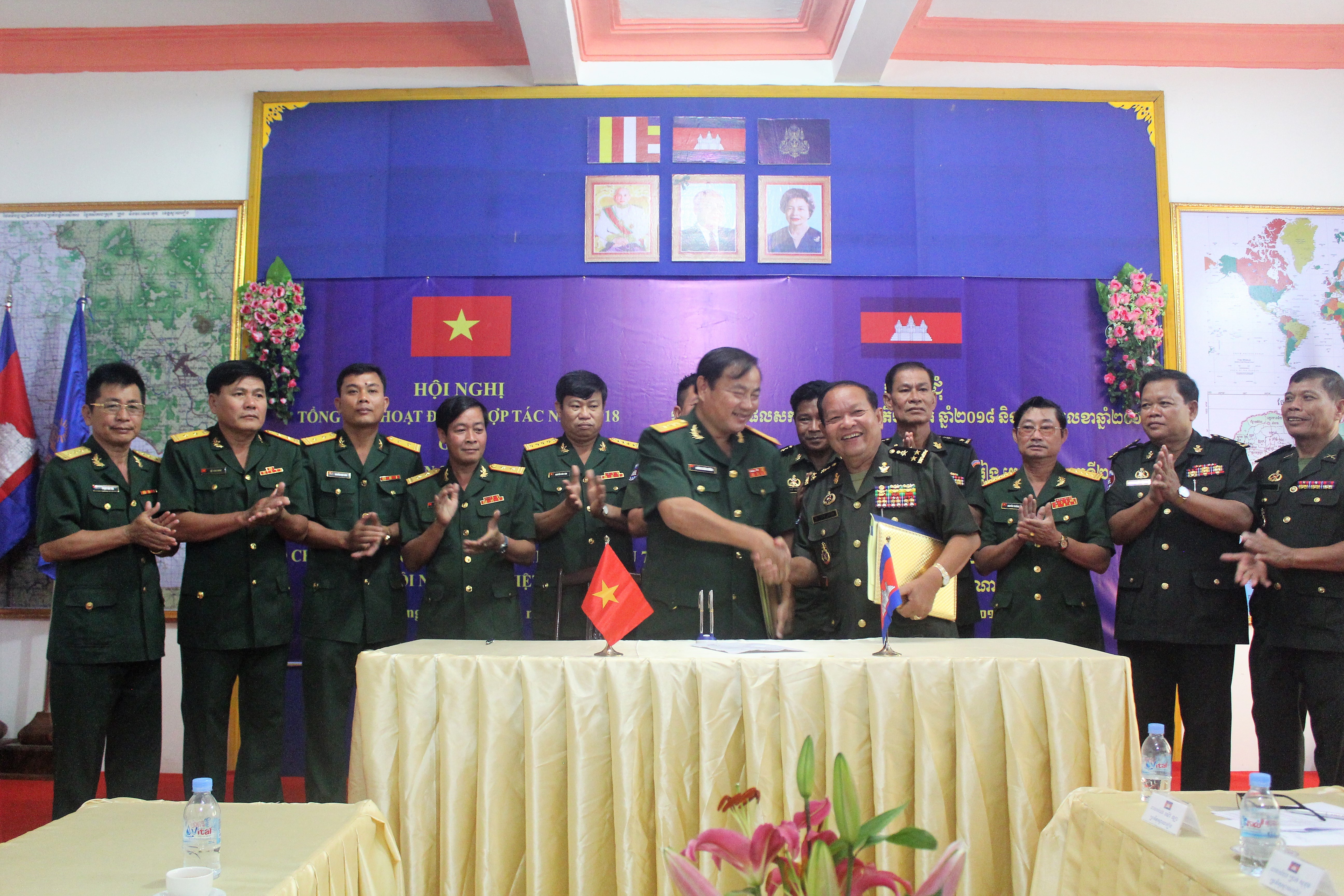 Đại tá Hoàng Xuân Cường, Chính ủy Bộ chỉ huy quân sự Tây Ninh ký kết phối hợp các hoạt động năm 2019 với Tiểu khu quân sự tỉnh Pray Veng, Vương Quốc Campuchia.