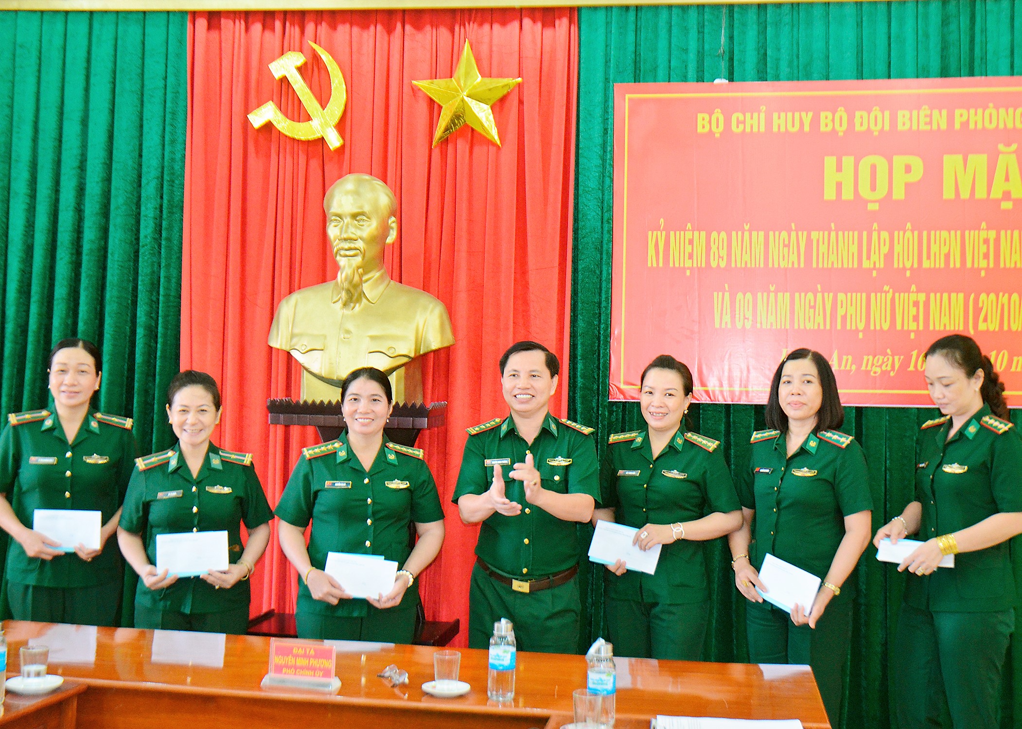 Thiếu tá Lê Thị Phương Hoa - Chủ tịch Hội phụ nữ BĐBP tỉnh ôn lại truyền thống của Phụ nữ Việt Nam trong 89 năm qua. Đồng thời đánh giá về vai trò và quá trình thực hiện nhiệm vụ của Hội Phụ nữ BĐBP tỉnh. Thời gian qua, công tác hội và phong trào phụ nữ từng bước được nâng lên, góp phần hoàn thành tốt nhiệm vụ chính trị được giao. Hội còn tập trung đẩy mạnh việc học tập và làm theo tư tưởng, đạo đức, phong cách Hồ Chí Minh, gắn với việc phát huy tính tự giác, tích cực của cán bộ, hội viên trong rèn luyện phẩm chất "Tự trọng, tự tin, đảm đang, trung hậu"... tuyên truyền, vận động chị em, cán bộ, hội viên trong BĐBP tích cực tham gia vào việc thực hiện nhiệm vụ, xây dựng tổ chức Đảng trong sạch vững mạnh, đơn vị vững mạnh toàn diện, xây dựng và bảo vệ chủ quyền lãnh thổ, an ninh biên giới quốc gia.