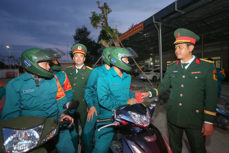 Chỉ huy Ban CHQS xã Thạnh Hóa, tỉnh Tây Ninh động viên chiến sĩ dân quân trước khi tuần tra bảo vệ trong đêm giao thừa.