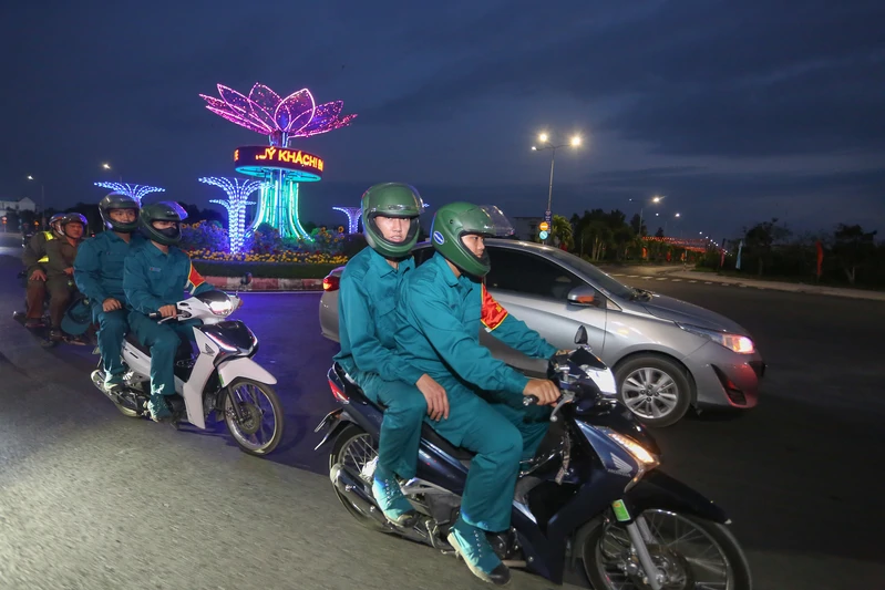 Cán bộ, chiến sĩ Tiểu đoàn 31 và Ban CHQS phường Sài Gòn (Bộ Tư lệnh TP Hồ Chí Minh) tuần tra trong đêm giao thừa.