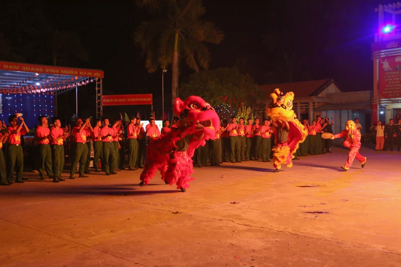 Bộ đội Tiểu đoàn 1, Trung đoàn 738, Bộ CHQS tỉnh Tây Ninh múa lân, đốt lửa trại trong đêm giao thừa.