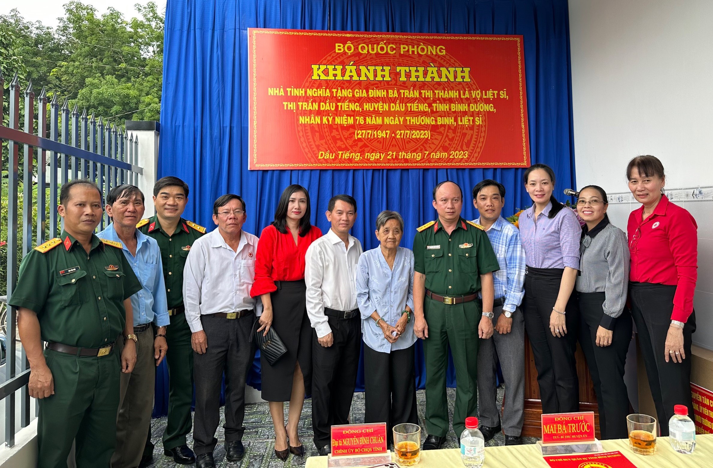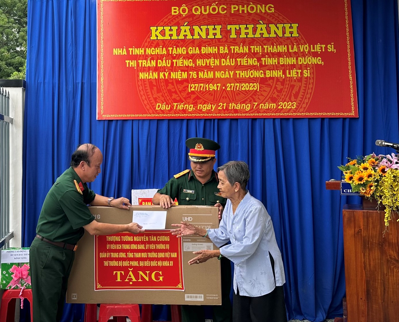 Các đại biểu tặng quà chúc bà Thành có ngôi nhà mới