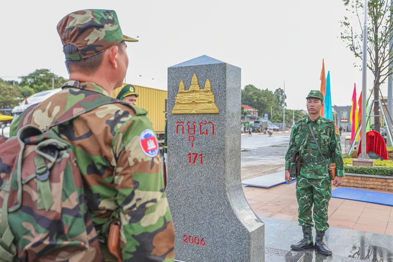 Bộ đội biên phòng Việt Nam và quân đội Hoàng gia Campuchia phối hợp luyện tập.