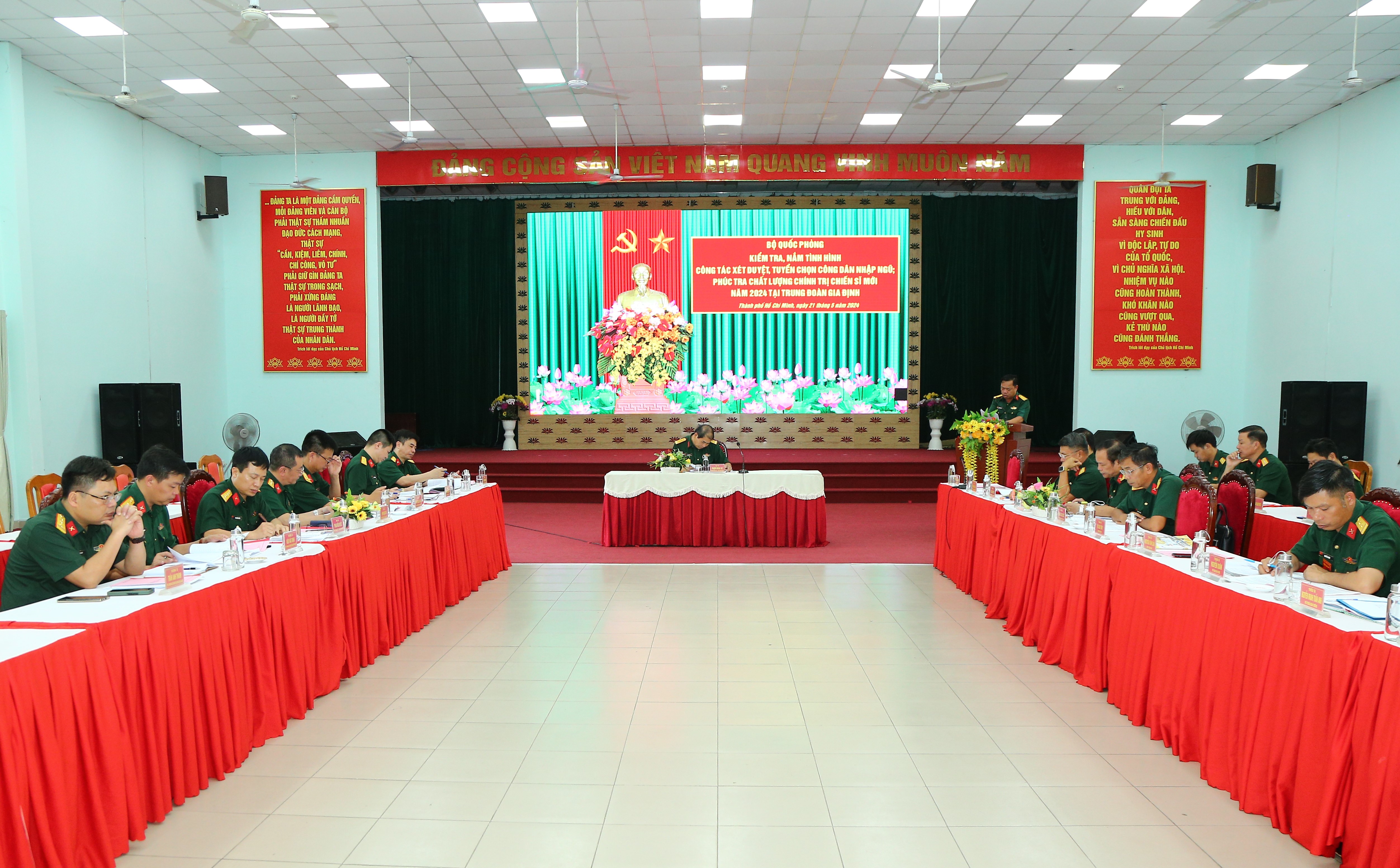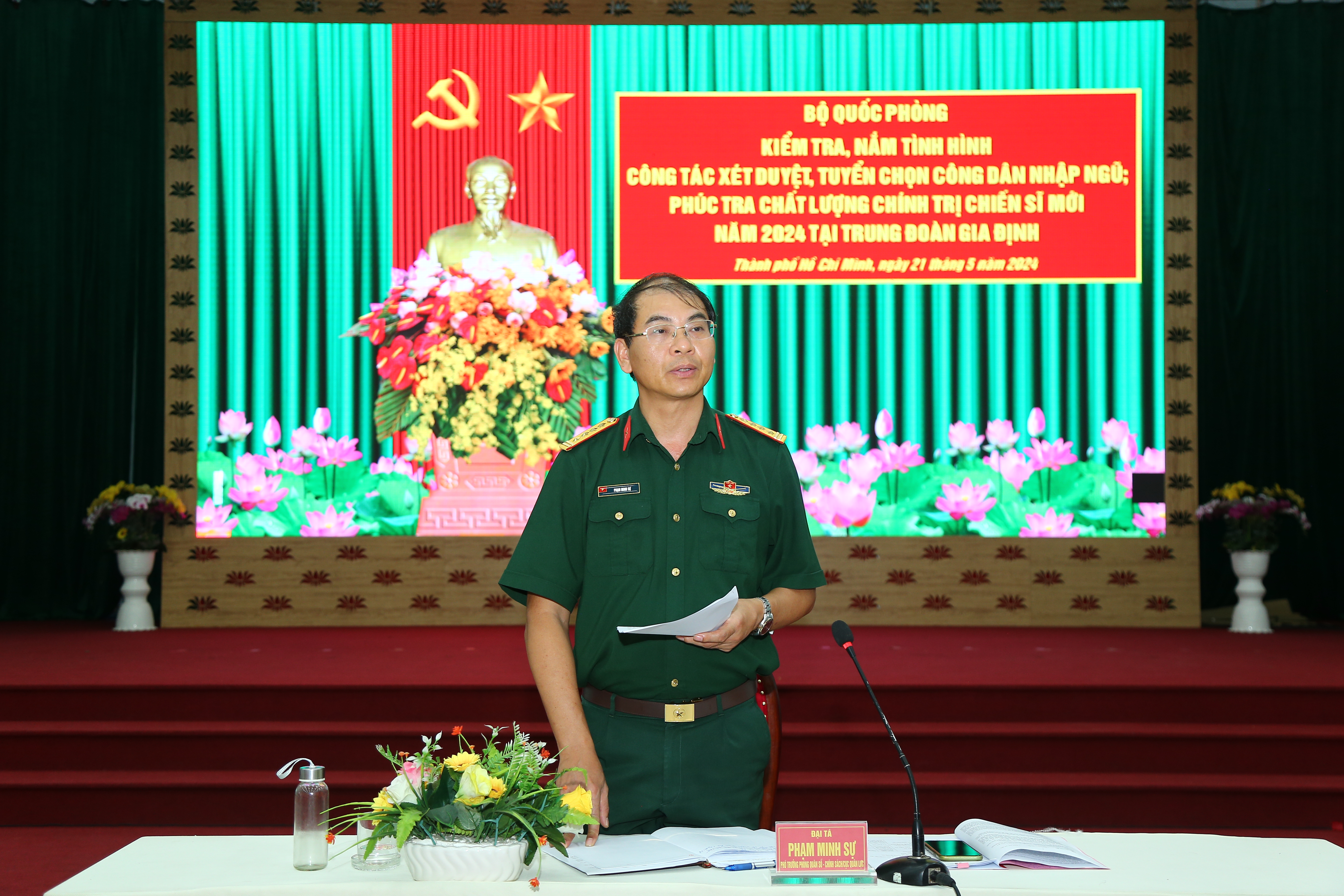 (QK7 Online) – Chiều 21/5, Bộ Quốc phòng tổ chức kiểm tra, nắm tình hình công tác xét duyệt, tuyển chọn công dân nhập ngũ; phúc tra chất lượng chính trị chiến sĩ mới (CSM) năm 2024 tại Trung đoàn Gia Định, Bộ Tư lệnh TPHCM. Đại tá Phạm Minh Sự, Phó Trưởng Phòng Quân số - Chính sách, Cục Quân lực, Bộ Tổng tham mưu chủ trì kiểm tra. Tham gia đoàn có thủ trưởng các cơ quan Quân khu 7 và Bộ Tư lệnh TPHCM.