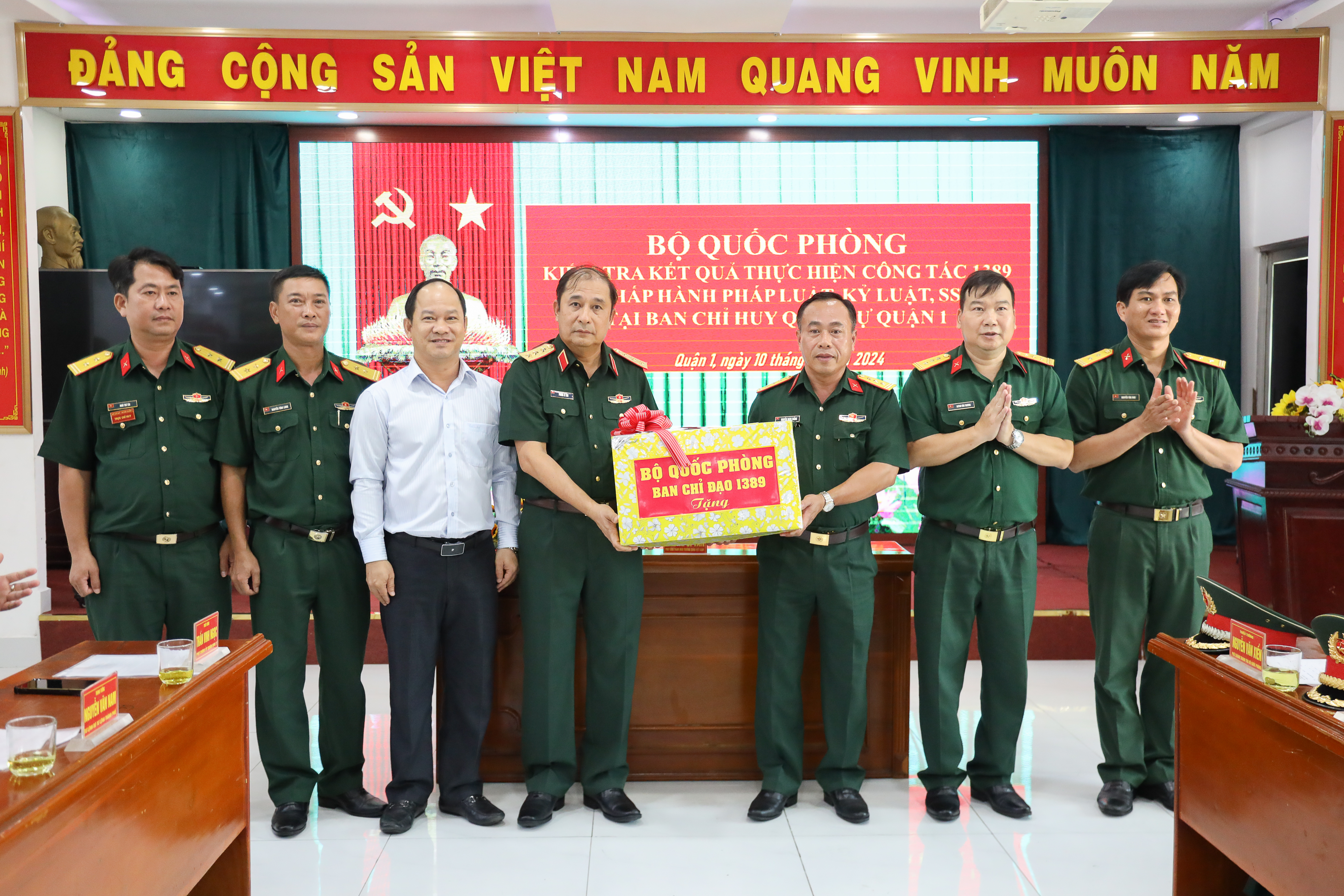 (QK7 Online) - Ngày 10/10, đoàn công tác của Bộ Quốc phòng do Thượng tướng Phùng Sĩ Tấn, Phó Tổng Tham mưu trưởng Quân đội nhân dân Việt Nam, Phó trưởng Ban Chỉ đạo 1389 Bộ Quốc phòng làm trưởng đoàn đến kiểm tra kết quả thực hiện công tác 1389, xử lý vi phạm hành chính và chấp hành pháp luật, kỷ luật, sẵn sàng chiến đấu (SSCĐ) tại Bộ Tư lệnh TP.HCM và Bộ Chỉ huy Bộ đội Biên phòng TP.HCM (BĐBP).
