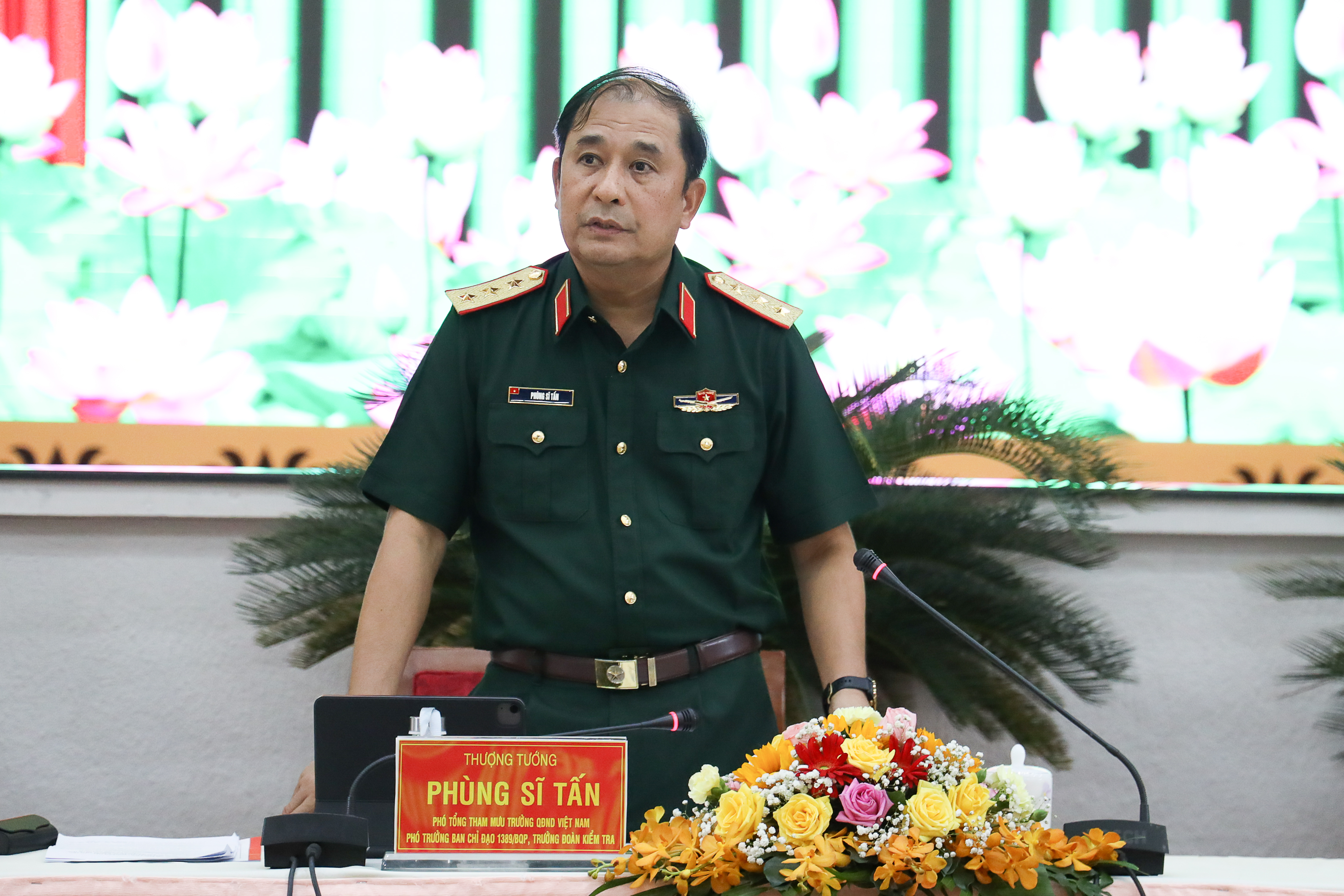 Thượng tướng Phùng Sĩ Tấn, Phó Tổng Tham mưu trưởng Quân đội nhân dân Việt Nam, Phó trưởng Ban Chỉ đạo 1389 Bộ Quốc phòng phát biểu.