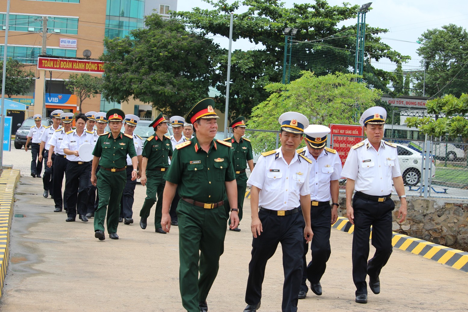 Thượng tướng Phạm Ngọc Minh (hàng đầu bên trái) cùng với lãnh đạo Hải quân Lữ đoàn 171 kiểm tra SSCĐ ở khối tàu săn ngầm