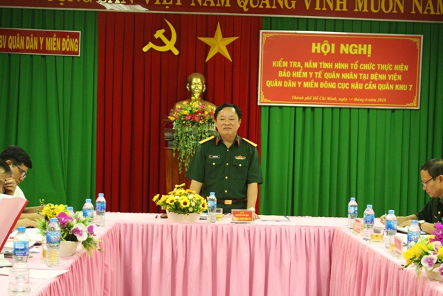 (QK7 Online) - Ngày 14/6, Đoàn công tác Bộ quốc phòng do Đại tá Nguyễn Văn Định, Giám đốc Bảo hiểm xã hội Bộ Quốc phòng dẫn đầu đã đến kiểm tra, nắm tình hình tổ chức thực hiện bảo hiểm y tế quân nhân tại Bệnh viện Quân dân y miền Đông.