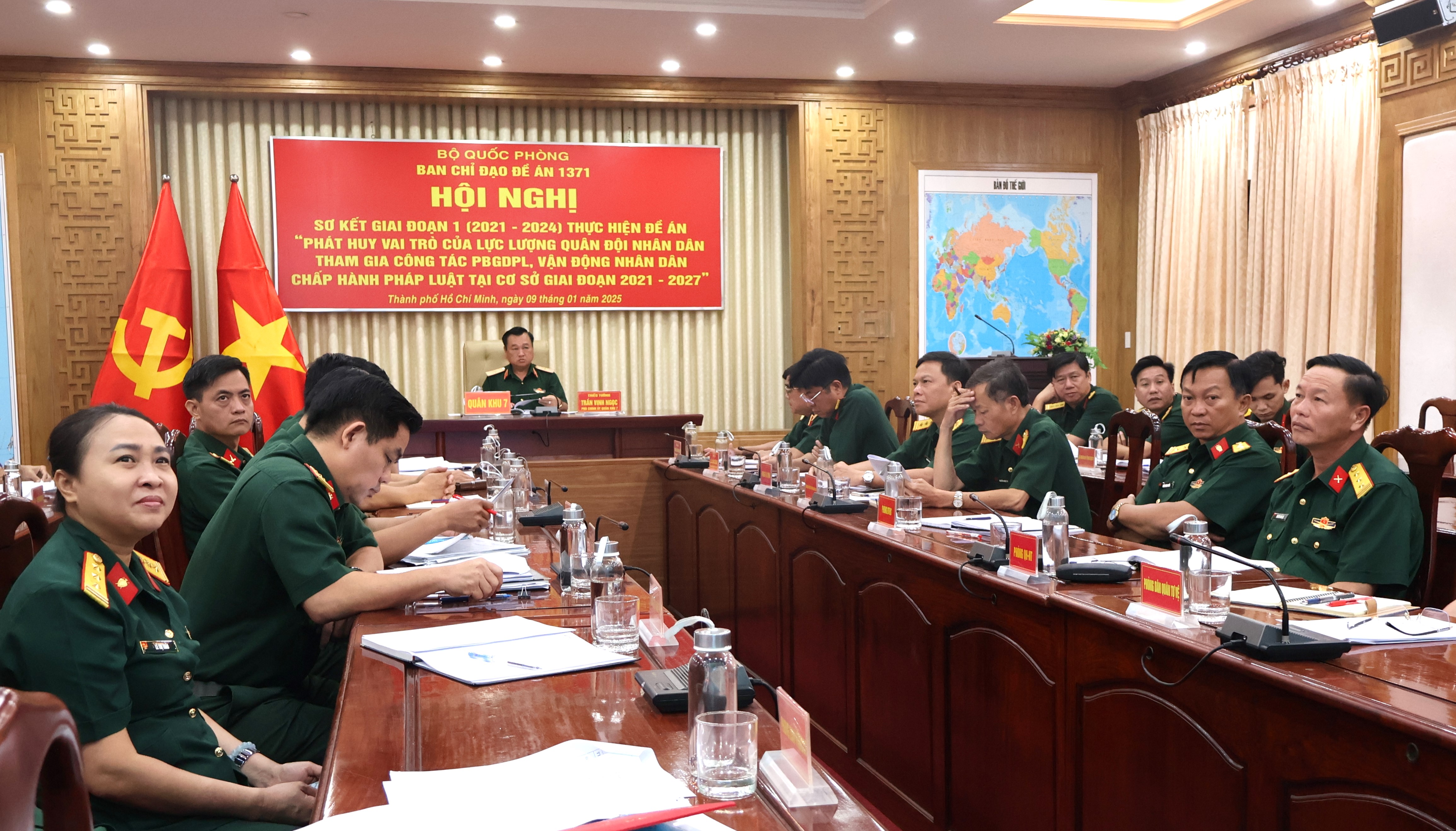 (QK7 Online) - Ngày 9/1, Bộ Quốc Phòng tổ chức Hội nghị sơ kết giai đoạn 1 (2021 - 2024) thực hiện Đề án “Phát huy vai trò của lực lượng Quân đội nhân dân tham gia công tác phổ biến, giáo dục pháp luật, vận động Nhân dân chấp hành pháp luật tại cơ sở giai đoạn 2021 - 2027” (Đề án 1371). Thượng tướng Võ Minh Lương, Ủy viên Trung ương Đảng, Ủy viên Thường vụ Quân ủy Trung ương, Thứ trưởng Bộ Quốc phòng, Trưởng ban chỉ đạo Đề án chủ trì Hội nghị.