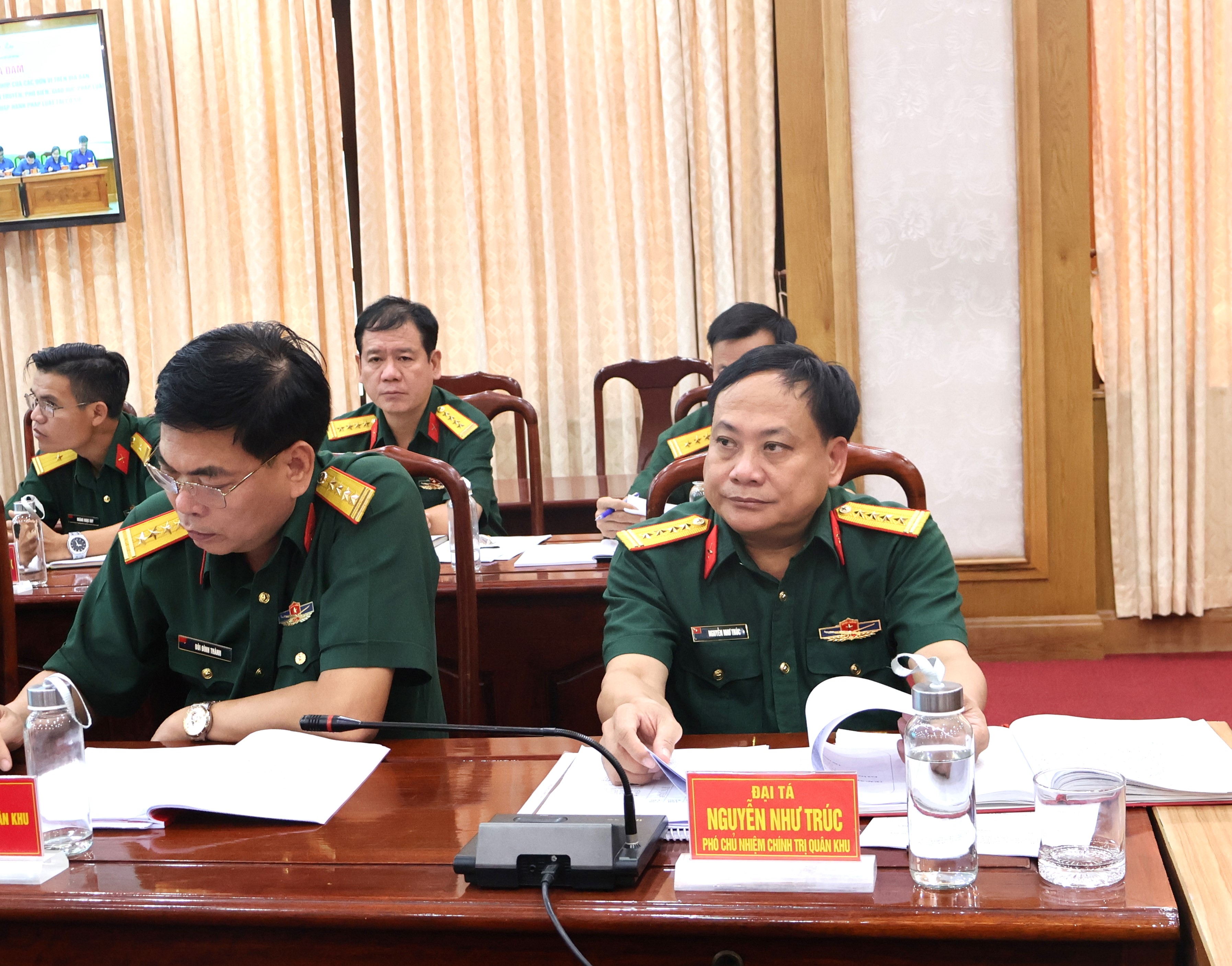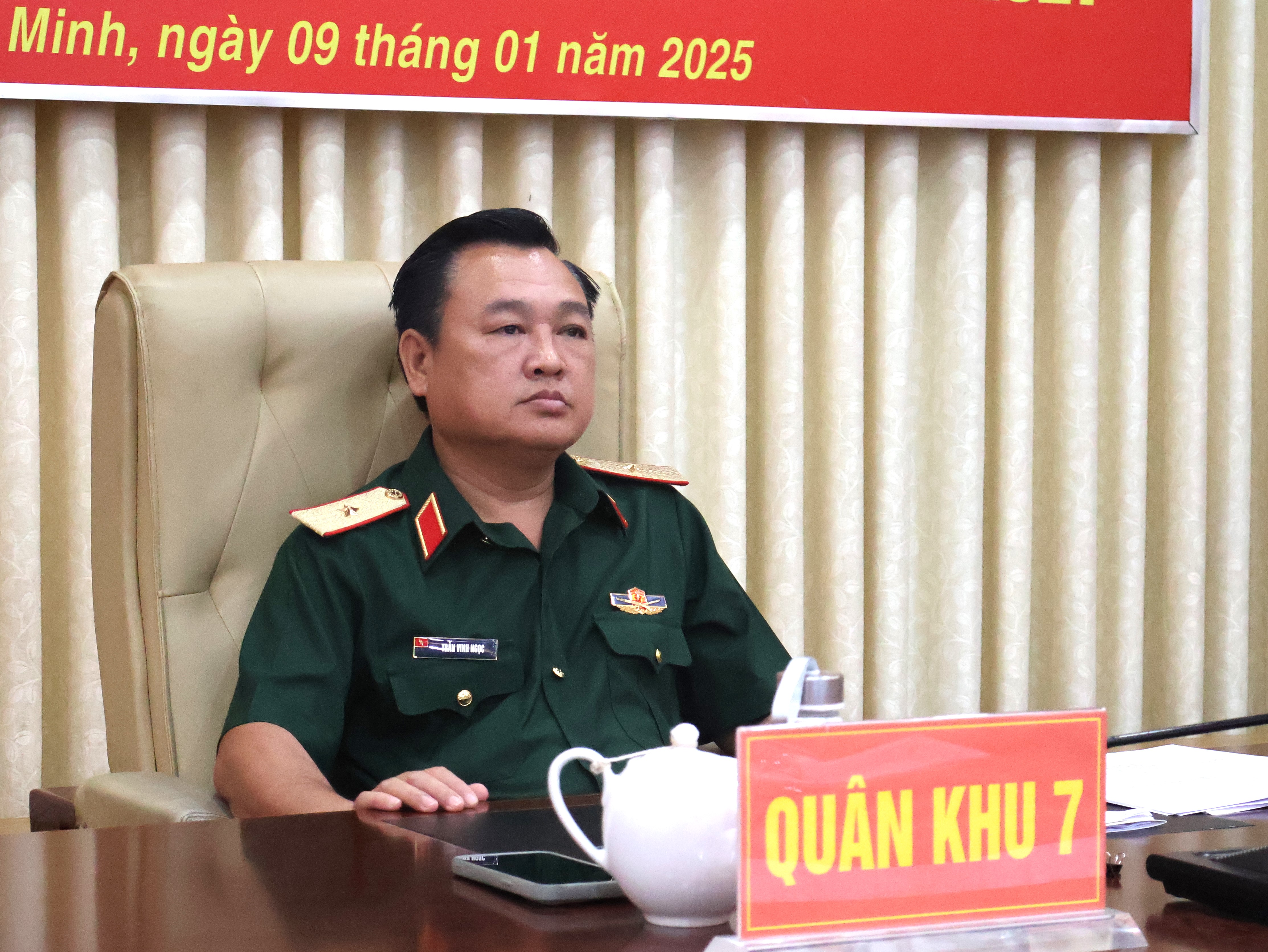 Hội nghị được tổ chức bằng hình thức trực tiếp và trực tuyến trên các điểm cầu toàn quân. Thiếu tướng Trần Vinh Ngọc, Phó Chính ủy Quân khu chủ trì hội nghị tại điểm cầu Quân khu 7.