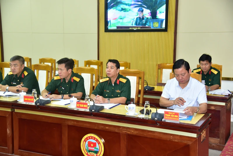 Tại điểm cầu Quân khu 7, Thiếu tướng Phạm Anh Tuấn, Chủ nhiệm Chính trị Quân khu chủ trì hội nghị.