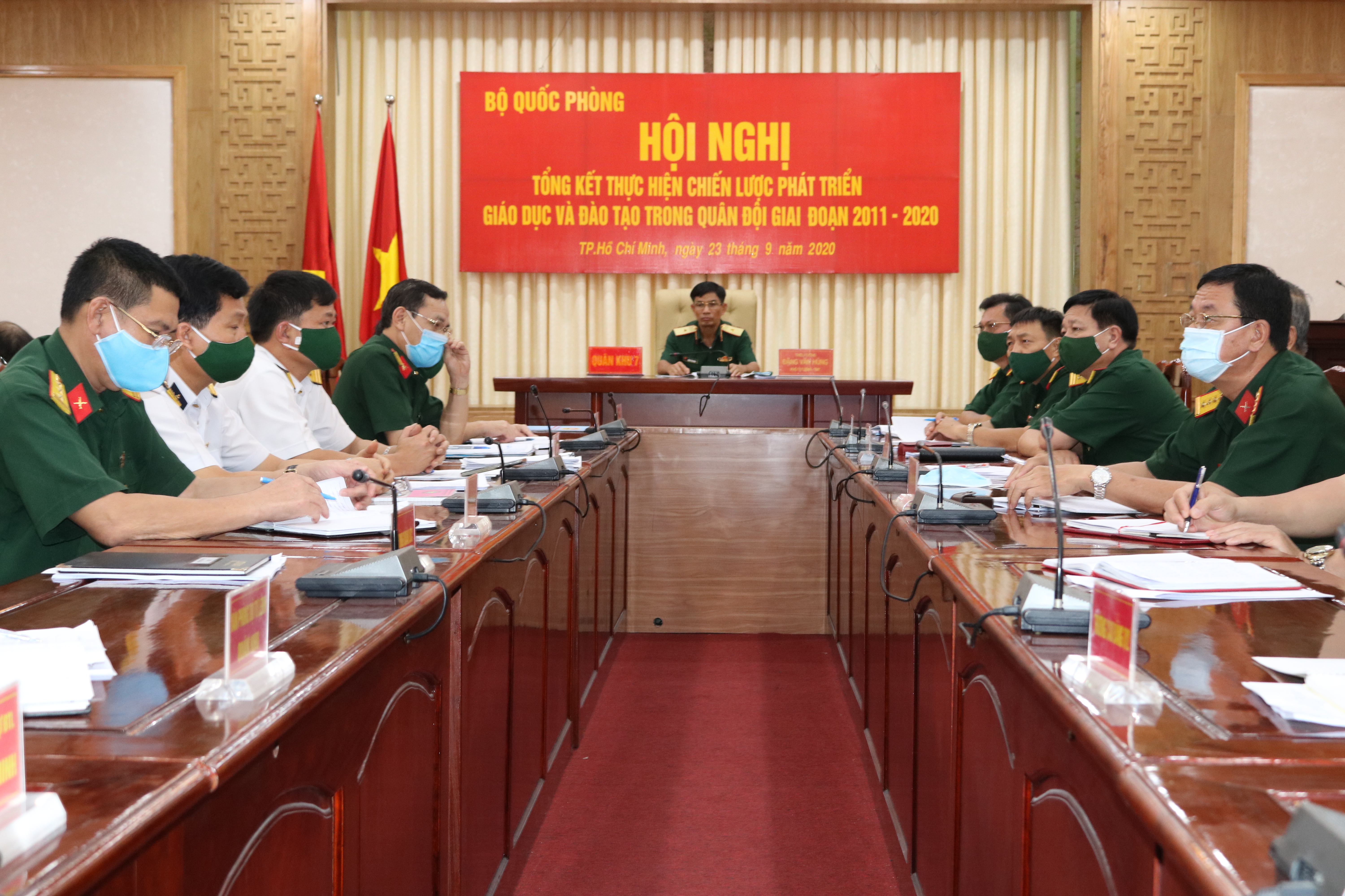 (QK7 Online) - Ngày 23/9, Bộ Quốc phòng tổ chức hội nghị tổng kết thực hiện Chiến lược phát triển giáo dục và đào tạo (GD, ĐT) trong Quân đội giai đoạn 2011-2020. Chủ trì hội nghị có Thượng tướng Phan Văn Giang, Ủy viên Trung ương Đảng, Ủy viên Thường vụ Quân ủy Trung ương, Tổng Tham mưu trưởng, Thứ trưởng Bộ Quốc phòng. Chủ trì tại điểm cầu Quân khu 7 có Thiếu tướng Đặng Văn Hùng, Phó Tư lệnh, Tham mưu trưởng Quân khu.
