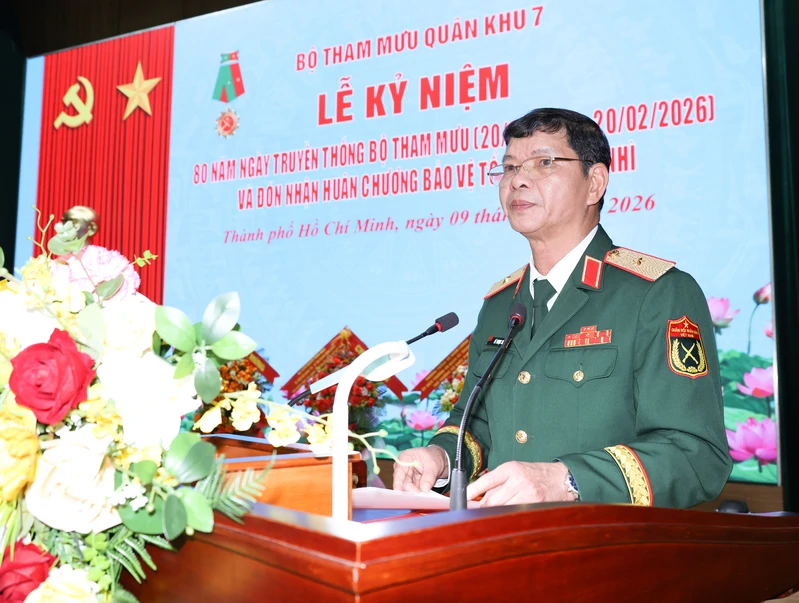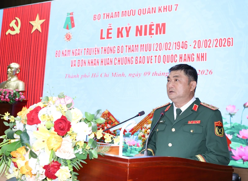 Trình bày diễn văn tại Lễ kỷ niệm, Đại tá Nguyễn Ngọc Kiên, Phó Tham mưu trưởng Quân khu 7 đã ôn lại những trang sử vẻ vang, truyền thống hào hùng của Bộ Tham mưu Quân khu trong 8 thập kỷ qua. Cách đây 80 năm, ngày 20/2/1946, tại căn cứ Lạc An (Chiến khu Đ), Khu bộ Khu 7 đã quyết định thành lập Phòng Tham mưu Khu 7, đánh dấu sự ra đời của cơ quan tham mưu Khu 7 tiền thân của Bộ Tham mưu Quân khu 7 ngày nay, tạo nền móng vững chắc cho quá trình xây dựng, chiến đấu và trưởng thành của cơ quan tham mưu trên chiến trường miền Đông Nam Bộ.