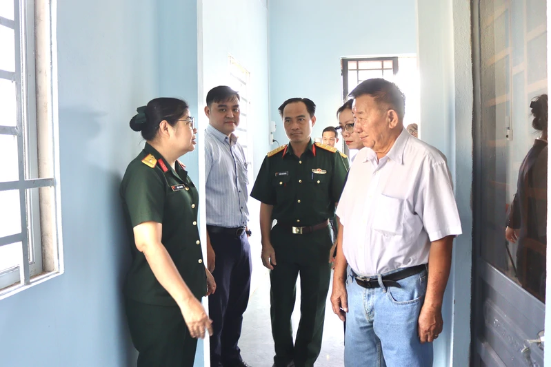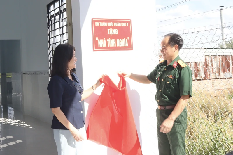 Thượng tá Trần Thái Khương, Chủ nhiệm Chính trị Bộ Tham mưu Quân khu và Thượng tá Trần Thị Mỹ Châu, Phó Tổng Giám đốc Công ty Tây Nam thực hiện nghi thức khánh thành, bàn giao "Nhà tình nghĩa" cho gia đình ông Tuấn Anh tại tỉnh Tây Ninh.