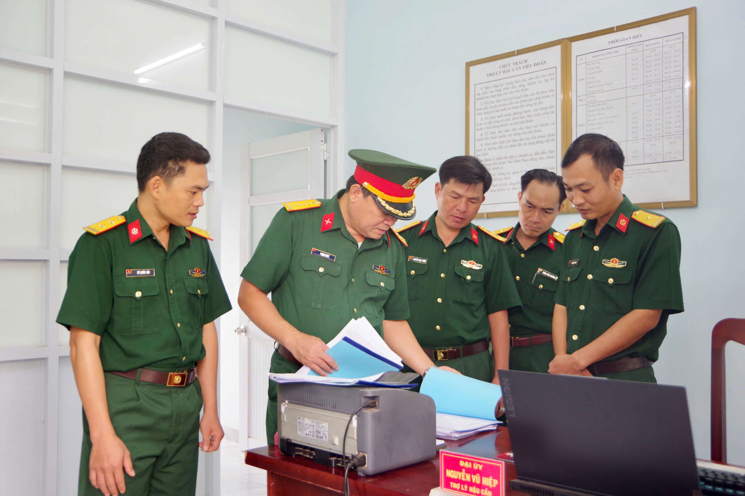 Đoàn công tác kiểm tra hồ sơ, sổ sách các đơn vị.