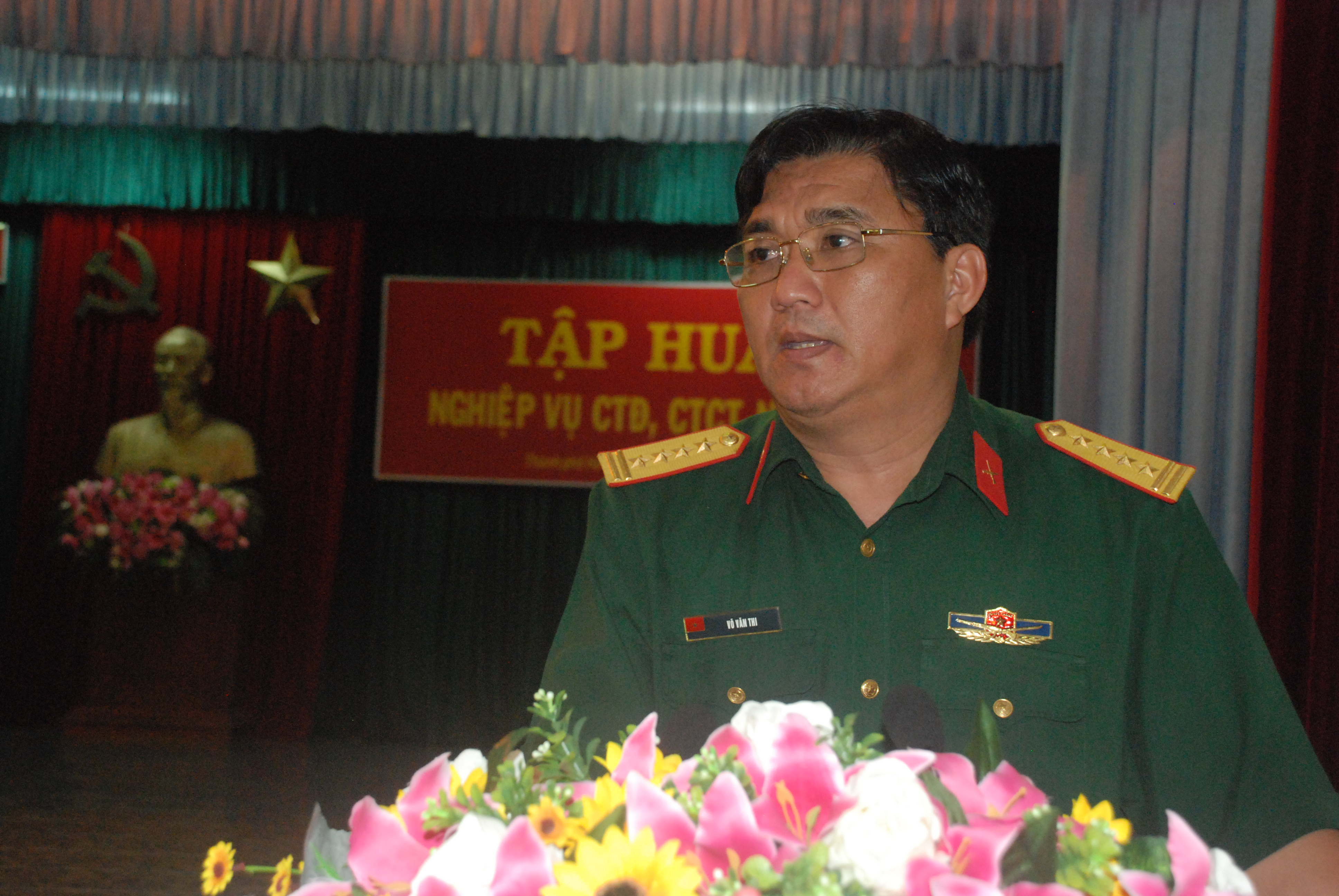 Đại tá Võ Văn Thi, Phó Tham mưu trưởng Quân khu phát biểu khai mạc