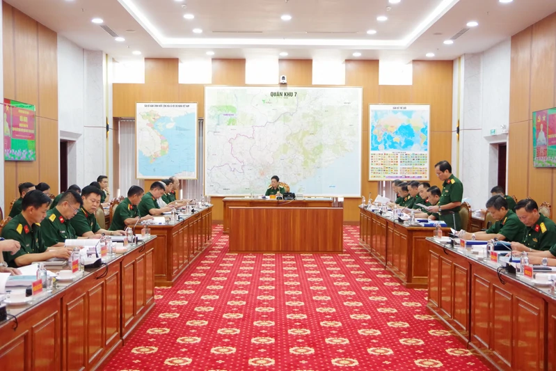 (QK7 Online) - Chiều ngày 15/1, Bộ Tư lệnh Quân khu 7 tổ chức hội nghị rút kinh nghiệm tổ chức các hoạt động kỷ niệm 80 năm Ngày truyền thống LLVT Quân khu (10/12/1945-10/12/2025). Trung tướng Trần Vinh Ngọc, Bí thư Đảng ủy, Chính ủy Quân khu chủ trì hội nghị. Tham dự hội nghị có Thiếu tướng Phạm Anh Tuấn, Ủy viên Ban Thường vụ Đảng ủy, Chủ nhiệm Chính trị Quân khu;