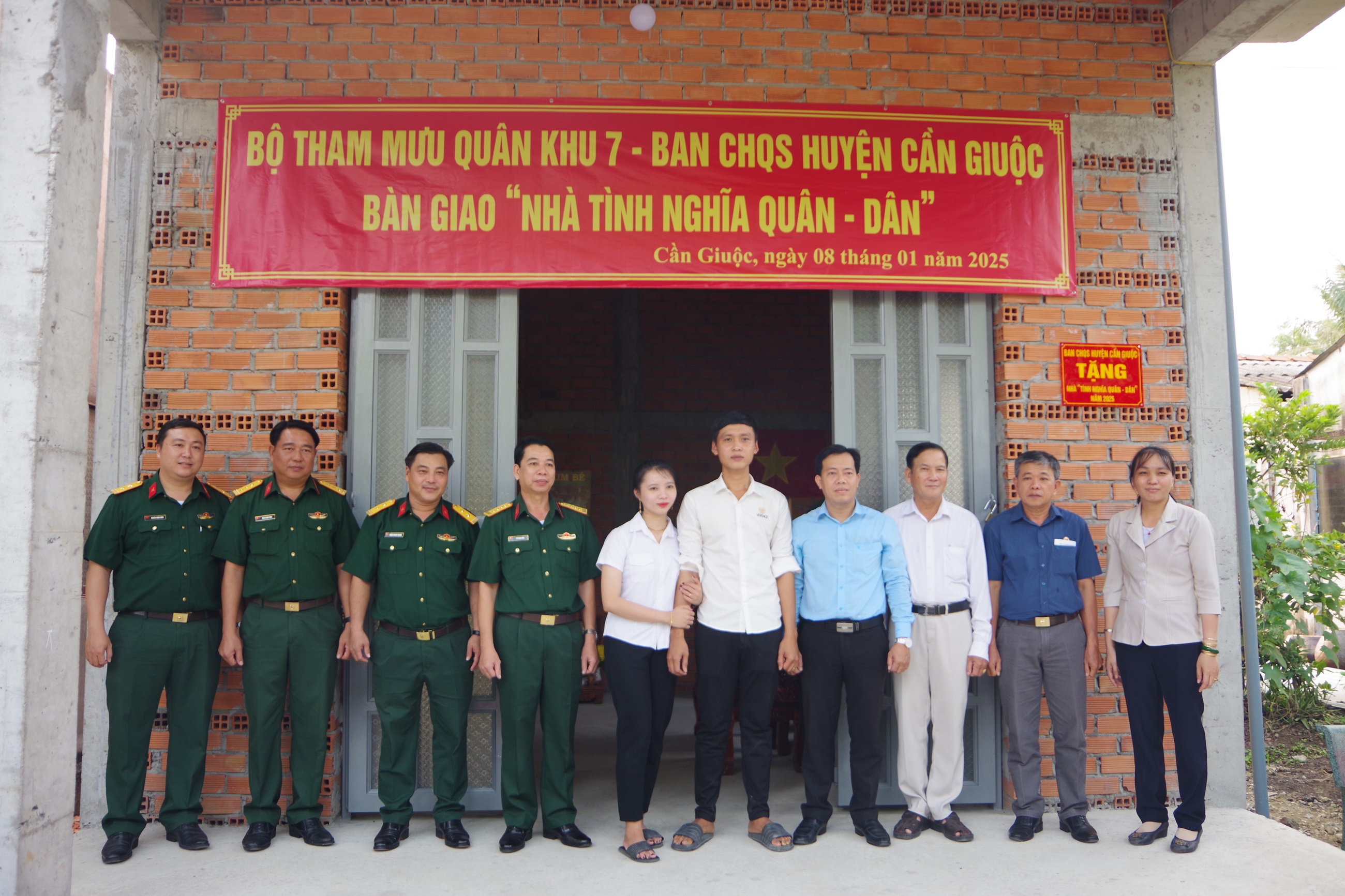 Bộ Tham mưu Quân khu 7 phối hợp Ban CHQS huyện Cần Giuộc bàn giao “Nhà tình nghĩa Quân – Dân” cho anh Lương Ngọc Hiếuấp Thuận Bắc, xã Thuận Thành.