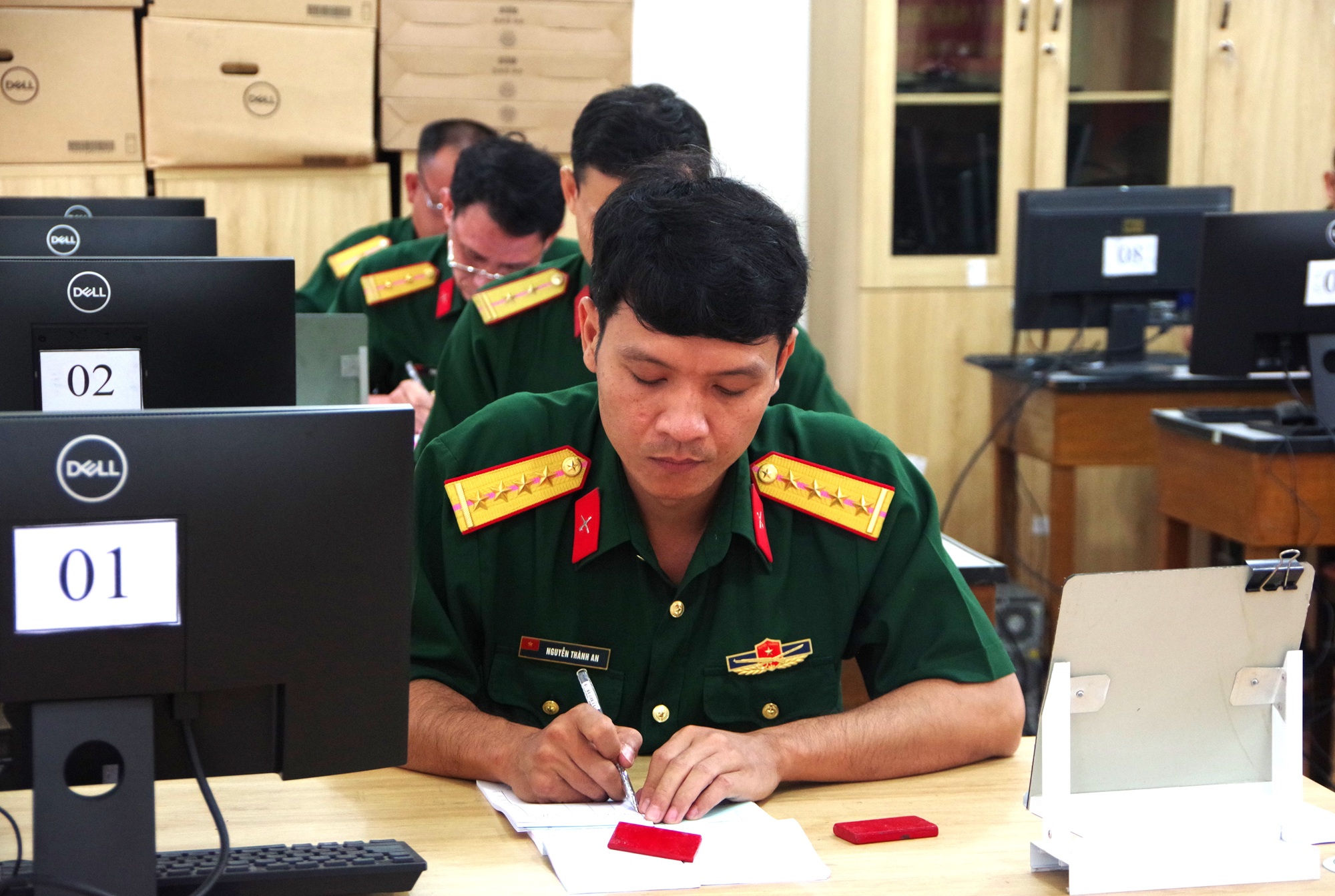 Các thí sinh dự buổi kiểm tra kỹ năng nghề ngành Cơ yếu Quân khu năm 2025.