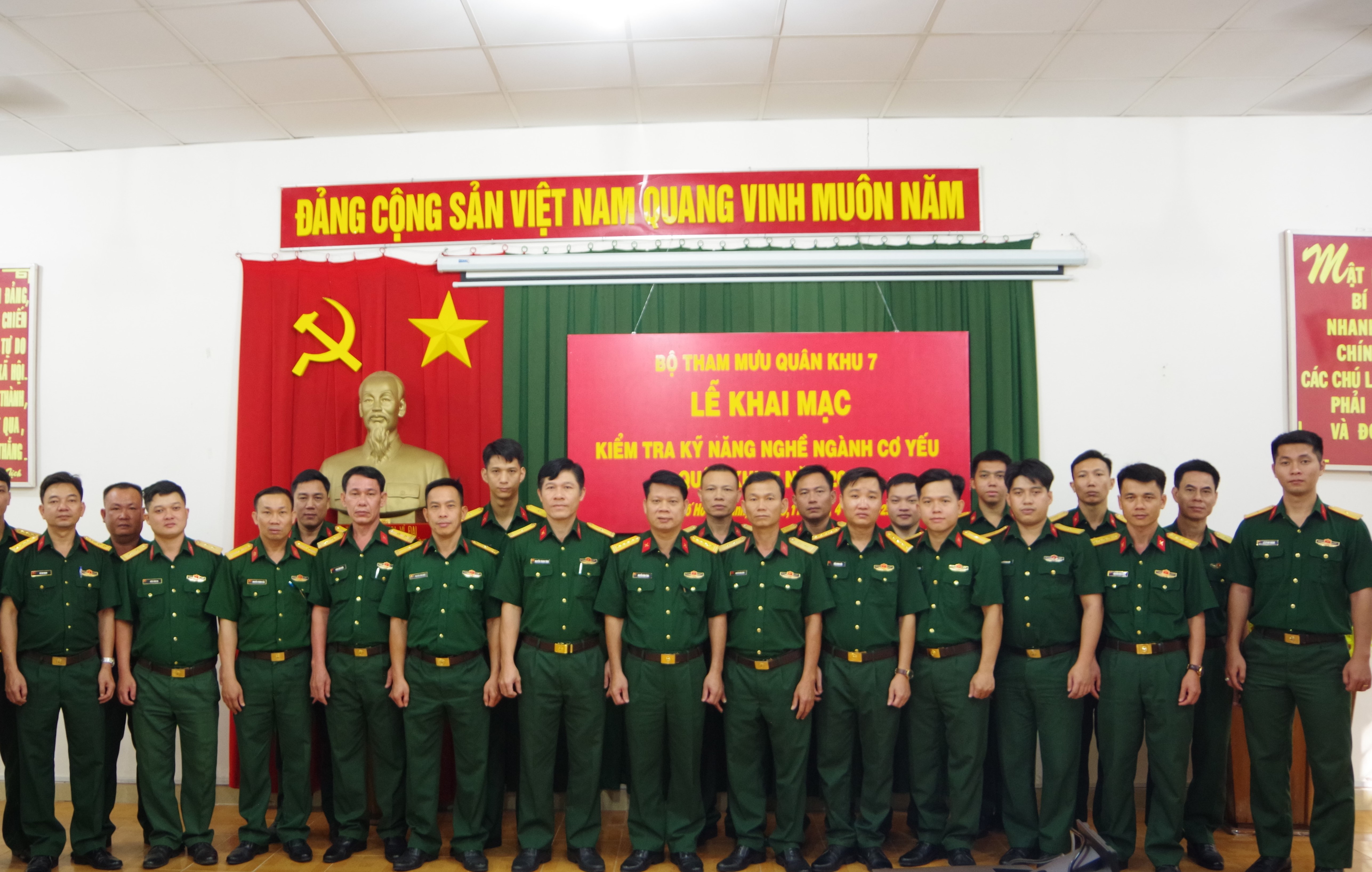 Hội đồng kiểm tra và các thí sinh tham gia kiểm tra kỹ năng nghề ngành Cơ yếu Quân khu năm 2025.
