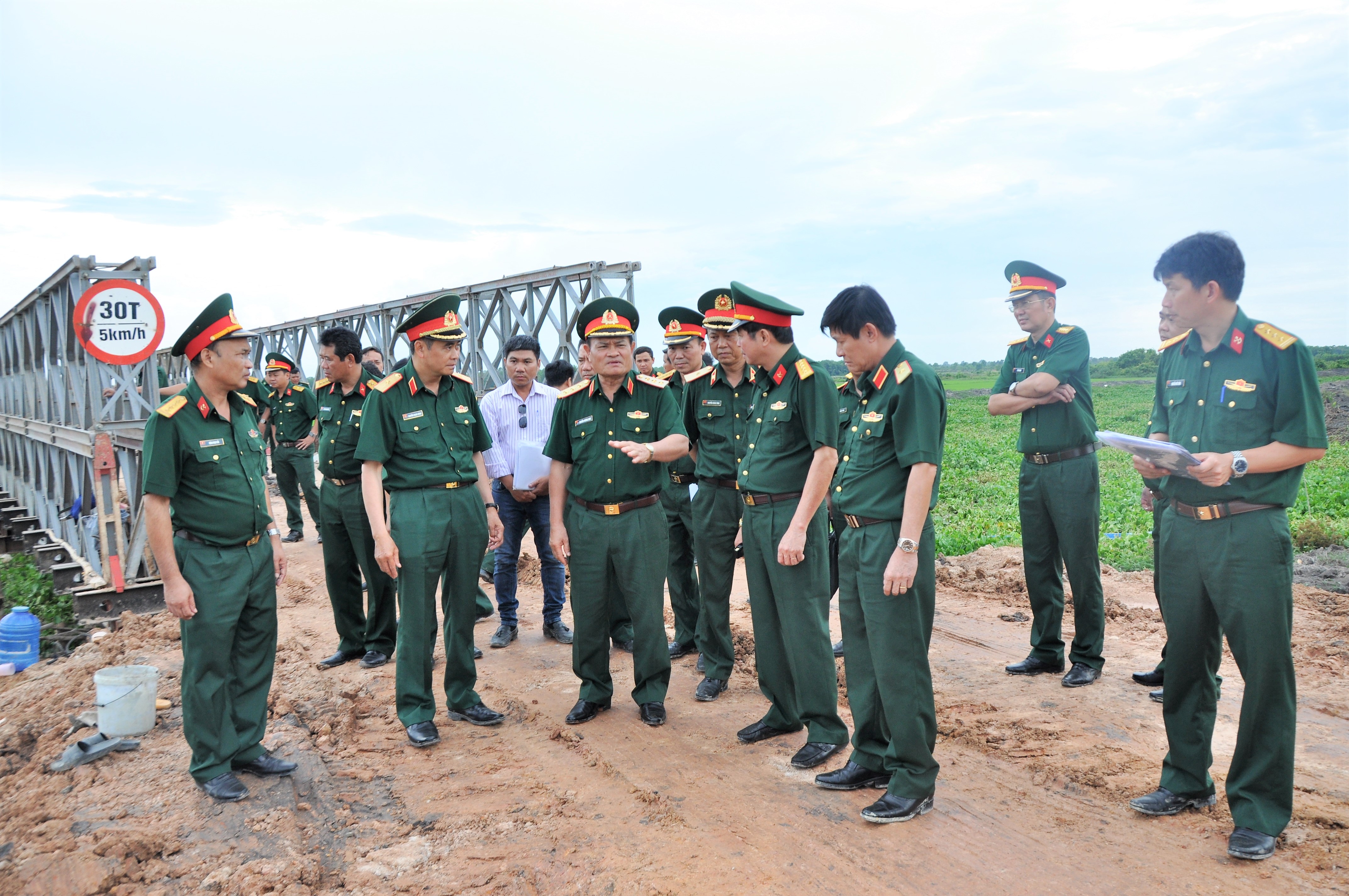 Thượng tướng Nguyễn Phương Nam kiểm tra tiến độ thi công cầu trên đường tuần tra biên giới tỉnh Tây Ninh.