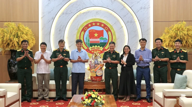 (QK7 Online) – Ngày 31/1, đoàn công tác do Thiếu tướng Vũ Hữu Hanh, Tư lệnh Bộ Tư lệnh 86, Bộ Quốc phòng làm trưởng đoàn đến thăm, chúc Tết Bộ Tư lệnh Quân khu 7 nhân dịp Tết Bính Ngọ 2026. Đón tiếp đoàn có Thiếu tướng Lê Xuân Bình, Phó Tư lệnh, Tham mưu trưởng Quân khu; Đại tá Nguyễn Hồng Cảnh, Phó Chủ nhiệm Chính trị Quân khu cùng thủ trưởng các cơ quan Quân khu.