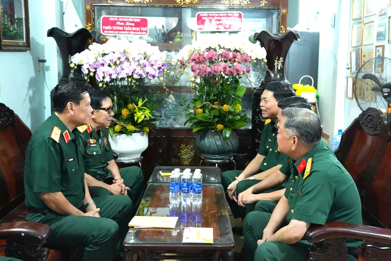 (QK7 Online) – Ngày 30/12, Đoàn công tác Bộ Tư lệnh Quân khu 7 do Thiếu tướng Đặng Văn Lẫm, Phó Tư lệnh Quân khu làm trưởng đoàn đến thăm, chúc mừng Thiếu tướng Trần Ngọc Thổ, nguyên Tham mưu trưởng Quân khu 7, nguyên Hiệu trưởng Trường Quân sự Quân khu 7 vinh dự được Đảng, Nhà nước phong tặng danh hiệu Anh hùng Lực lượng vũ trang (LLVT) Nhân dân. Tham gia cùng đoàn có đại diện Ban Giám hiệu và các phòng, khoa của Trường Quân sự Quân khu 7.