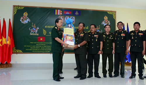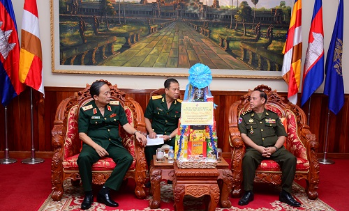 Cũng trong chương trình, đoàn công tác Quân khu 7 đã đến thăm và chúc tết Đại tướng Niêng Phát, Quốc vụ khanh Bộ Quốc phòng Campuchia.