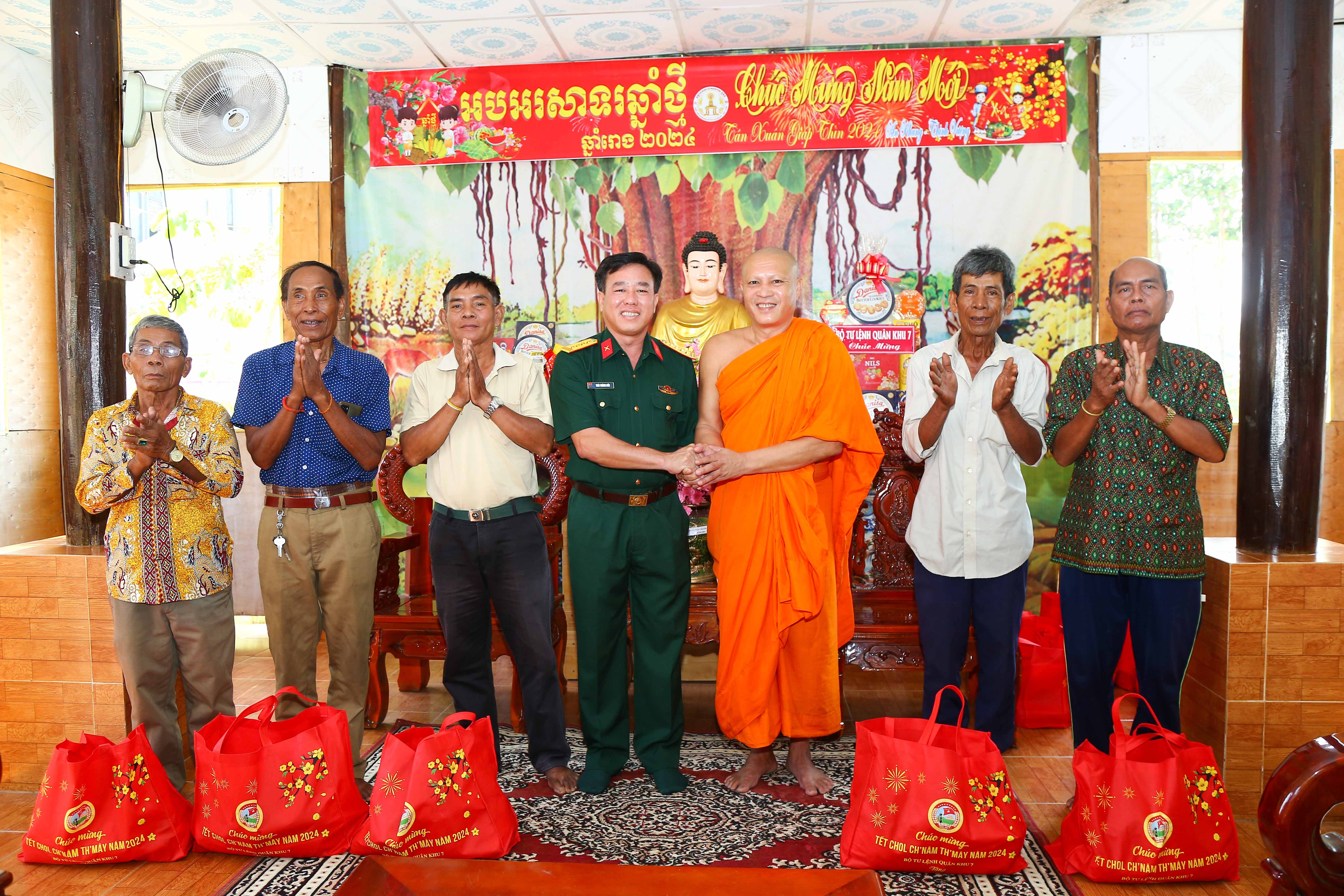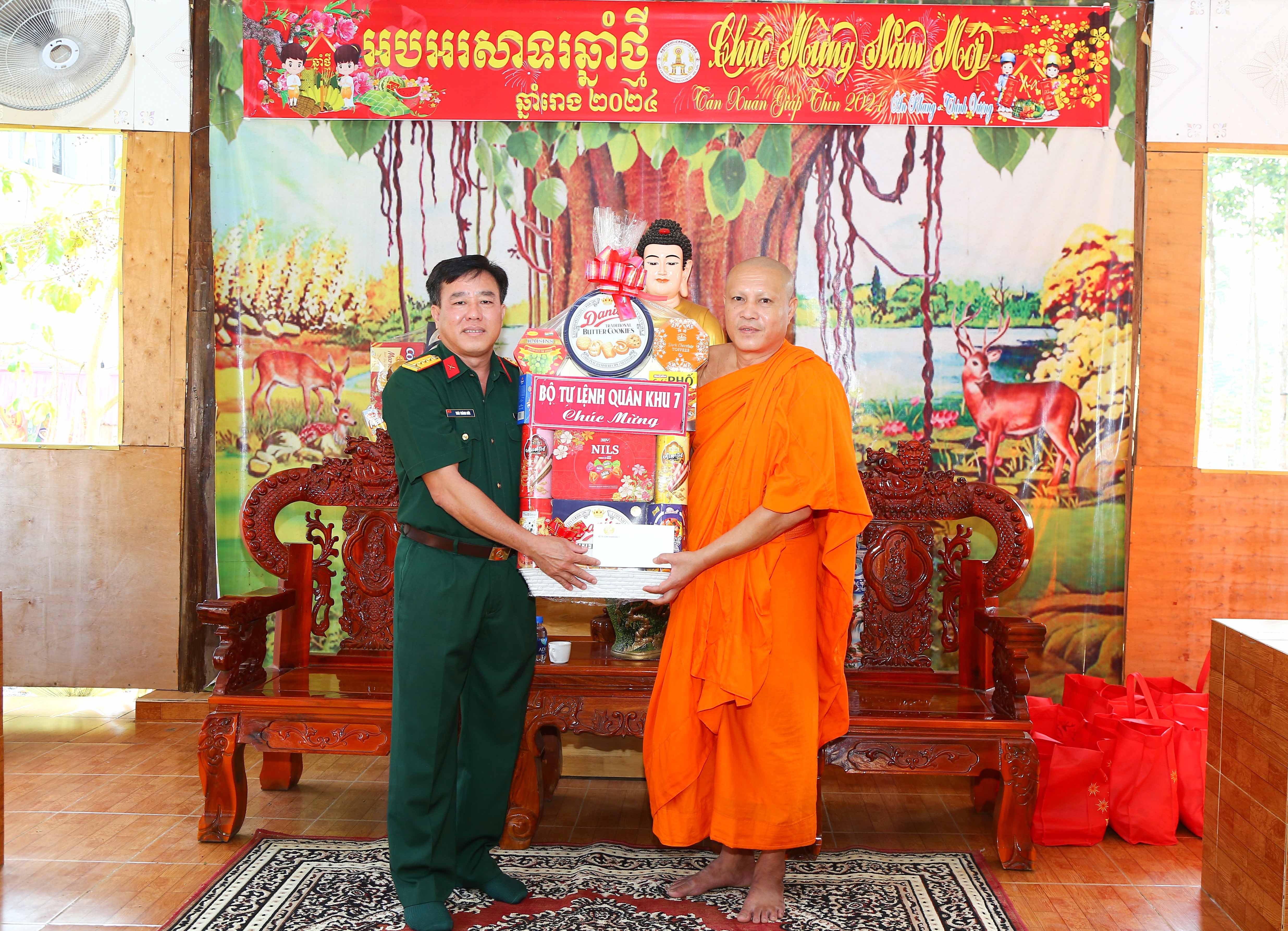 Thay mặt các vị chư tăng và bà con phật tử, trụ trì các chùa gửi lời cảm ơn sự quan tâm của Đảng ủy, Bộ Tư lệnh Quân khu 7 đã dành những tình cảm quý báu đối với đồng bào dân tộc Khmer. Các vị trụ trì hứa sẽ luôn nêu cao tình thần trách nhiệm, tích cực vận động bà con phật tử thực hiện tốt các chính sách, pháp luật của Đảng, Nhà nước; không ngừng phát huy khối đại đoàn kết dân tộc; sống tốt đời, đẹp đạo, góp phần cùng địa phương xây dựng quê hương ngày càng văn minh, phát triển.